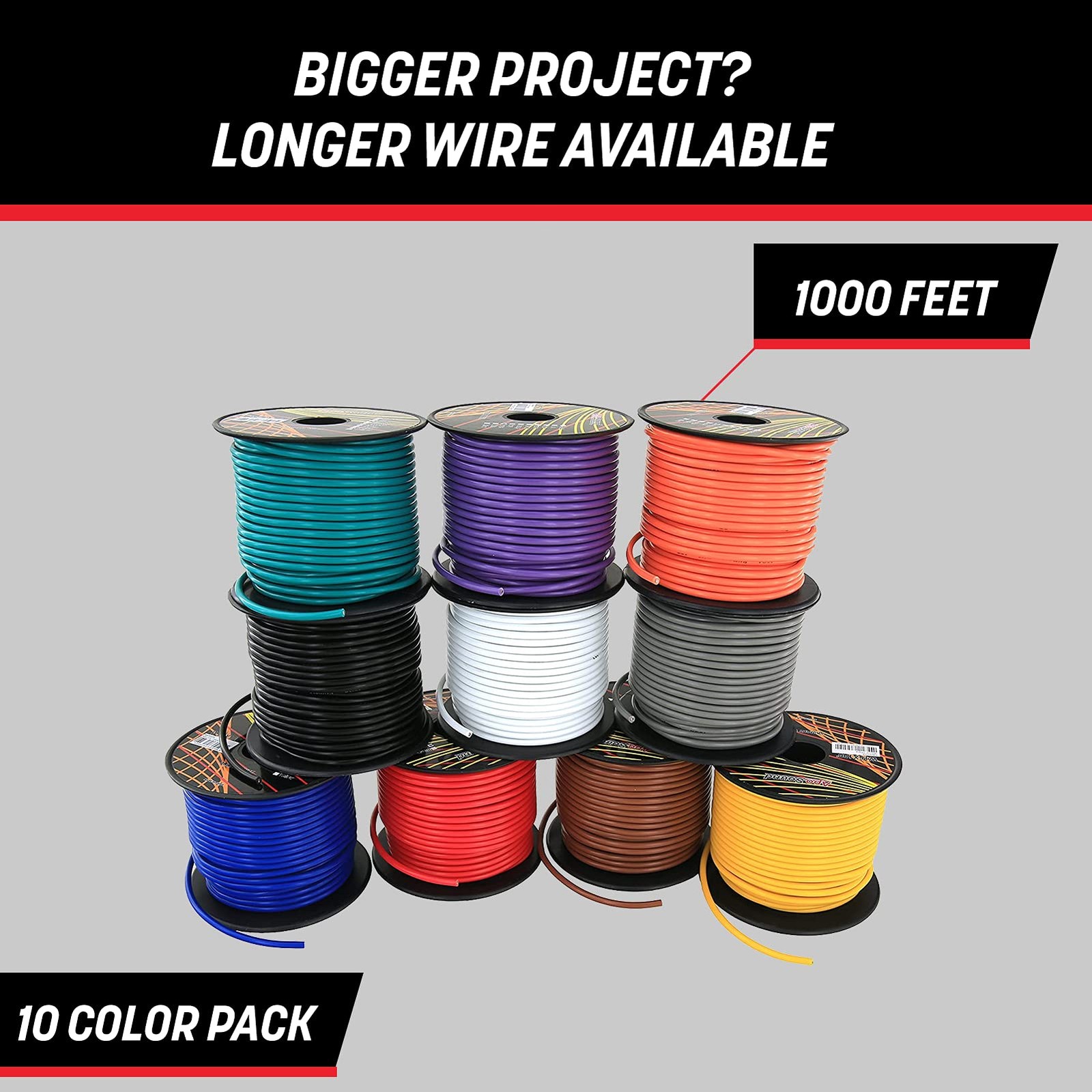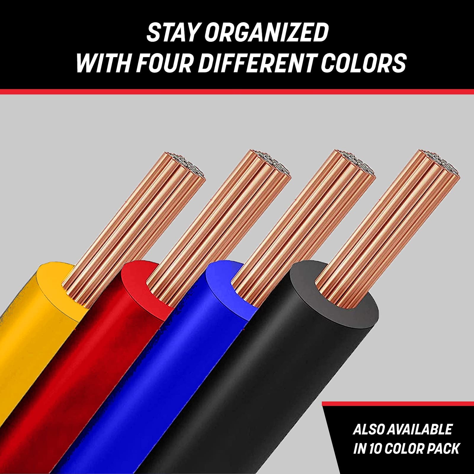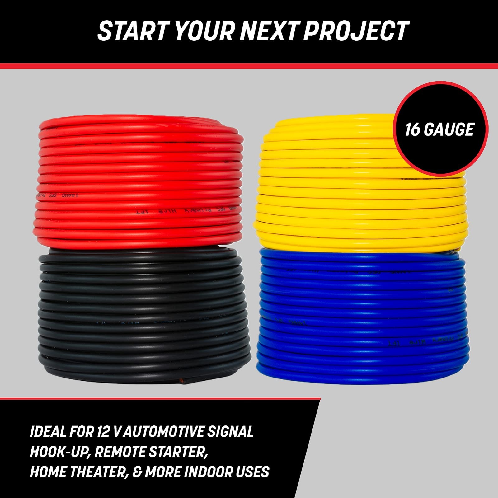 GS Power 400ft CCA 16 Gauge Wire Automotive, 100ft Spool-4 Colors, 16 AWG 12v...