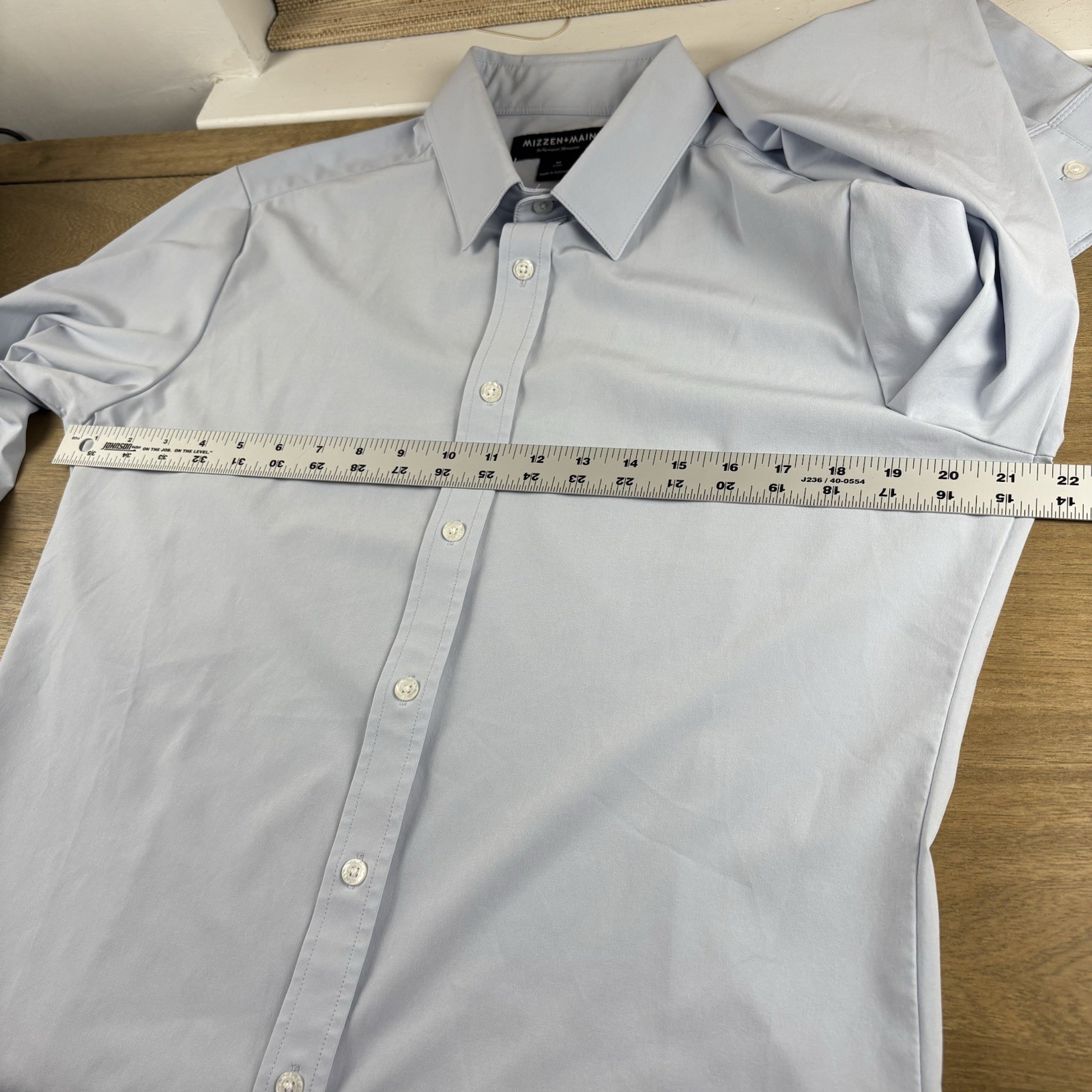 как выглядит Mizzen Main Mens L/S Button Up Shirt Blue Size Medium M Trim Fit Performance фото