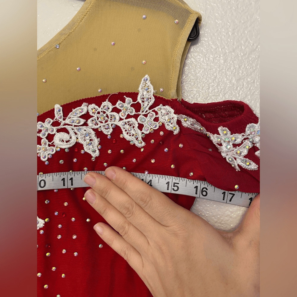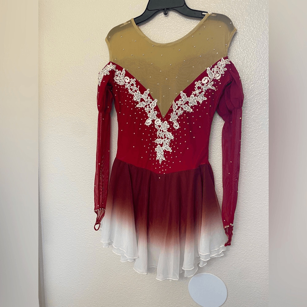 как выглядит Custom solo dance ice skating ballet costume dress red ombre rhinestoned LA фото
