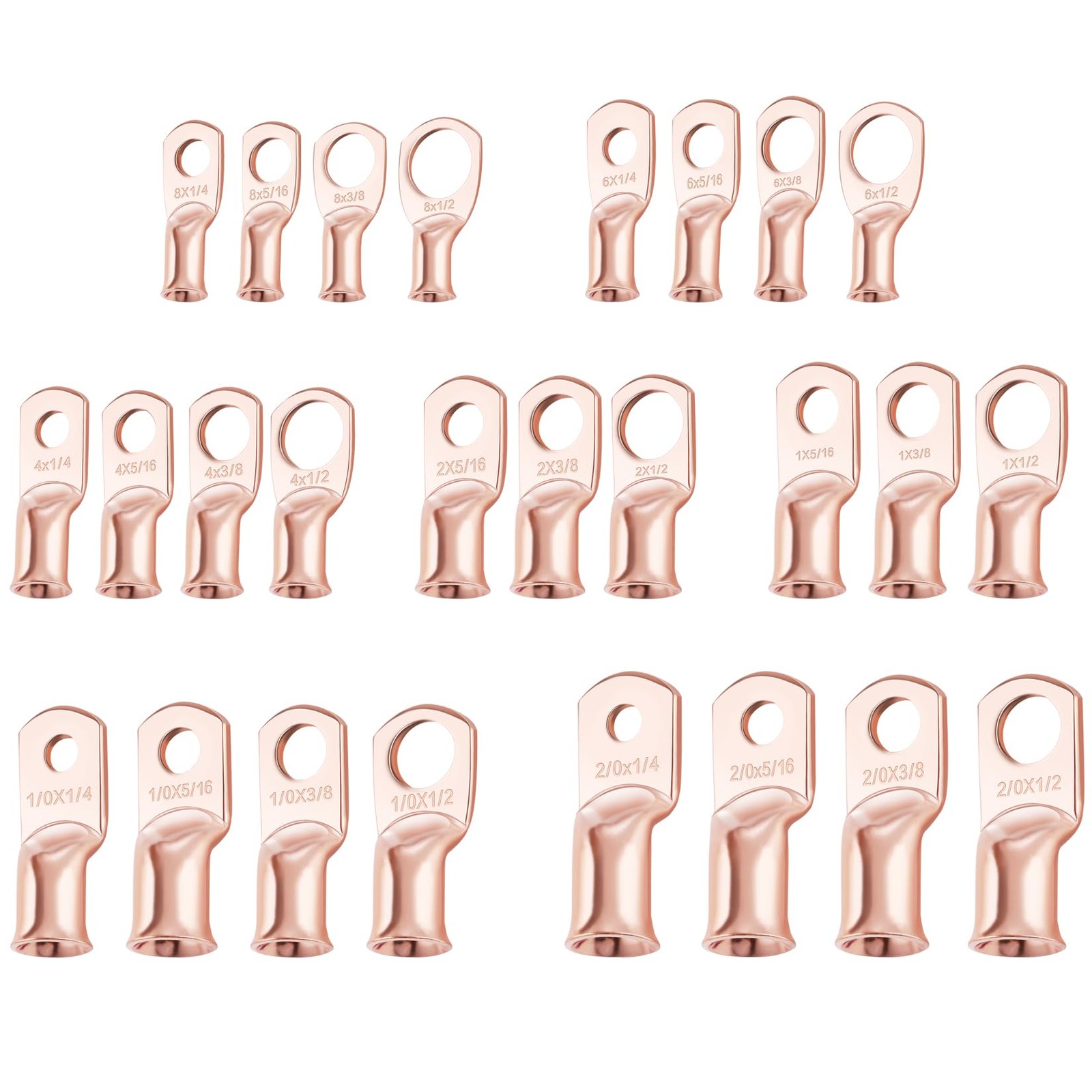 как выглядит XHF 10PCS 6 AWG-1/2 Heavy Duty Battery Lugs with 31 Heat Shrink Tubing, Ring ... фото