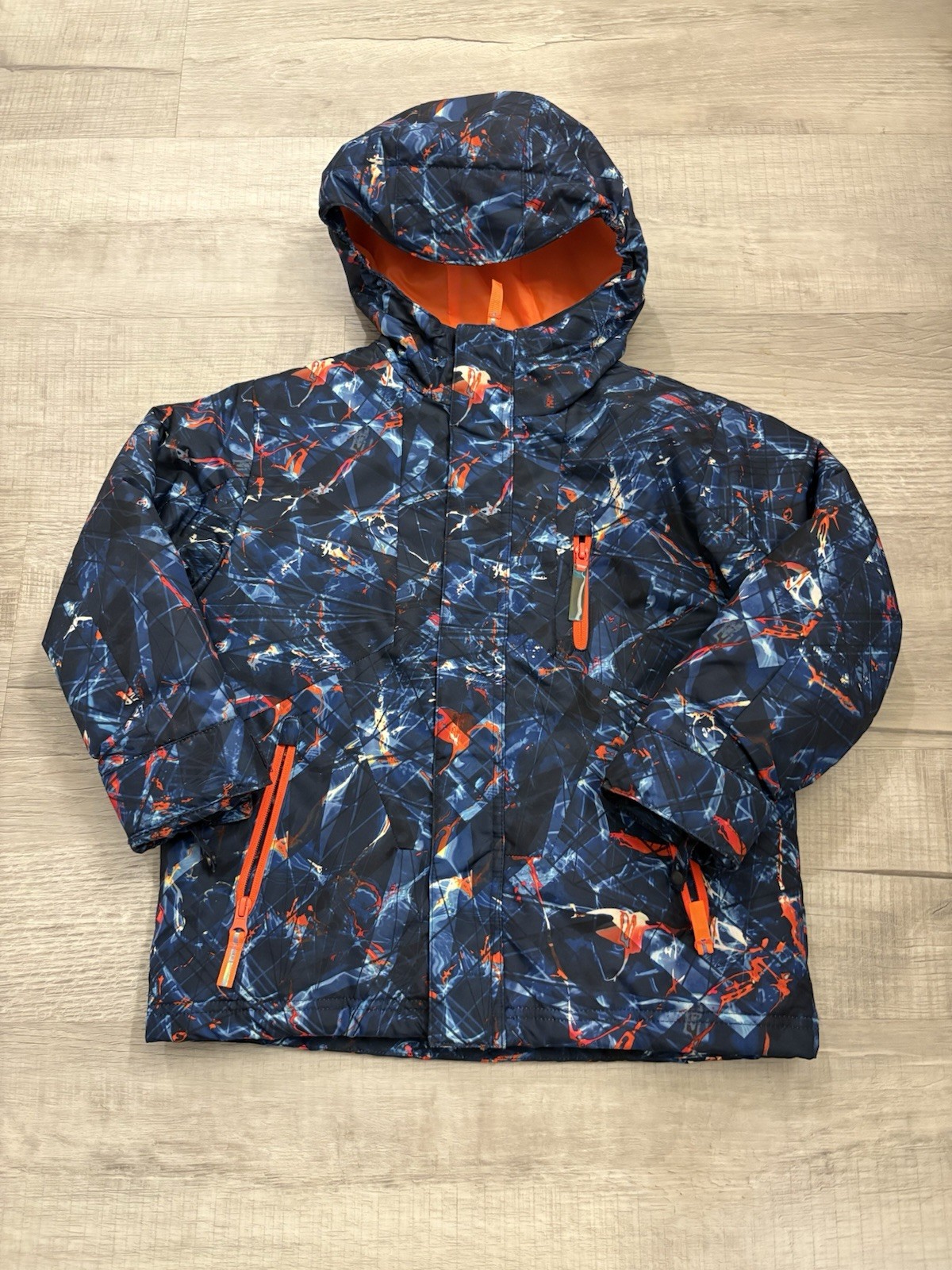 как выглядит Youth Blue/Orange Size 4/5 Warm Puffer Jacket Zip With Hood And Lots Of Pockets фото