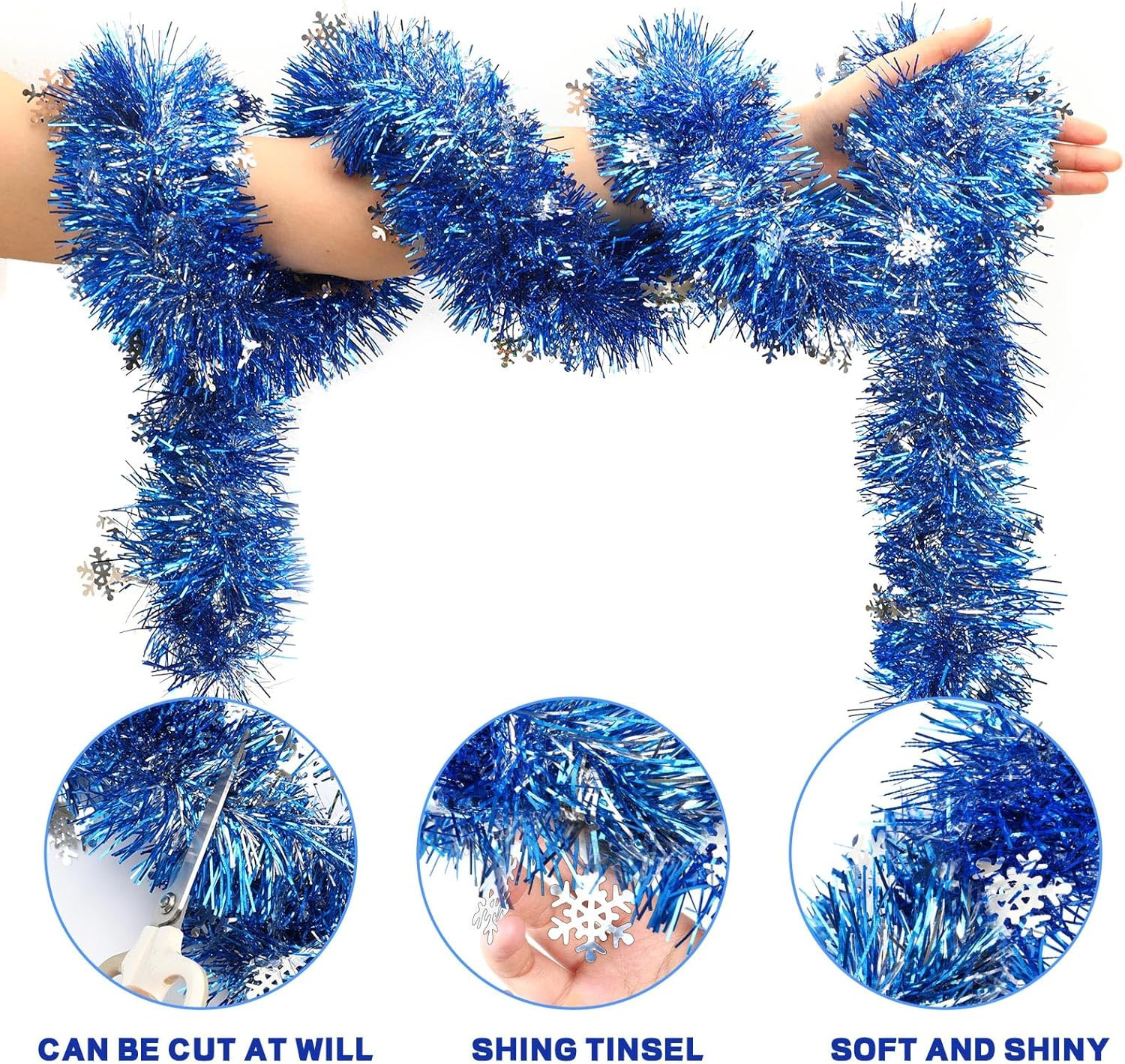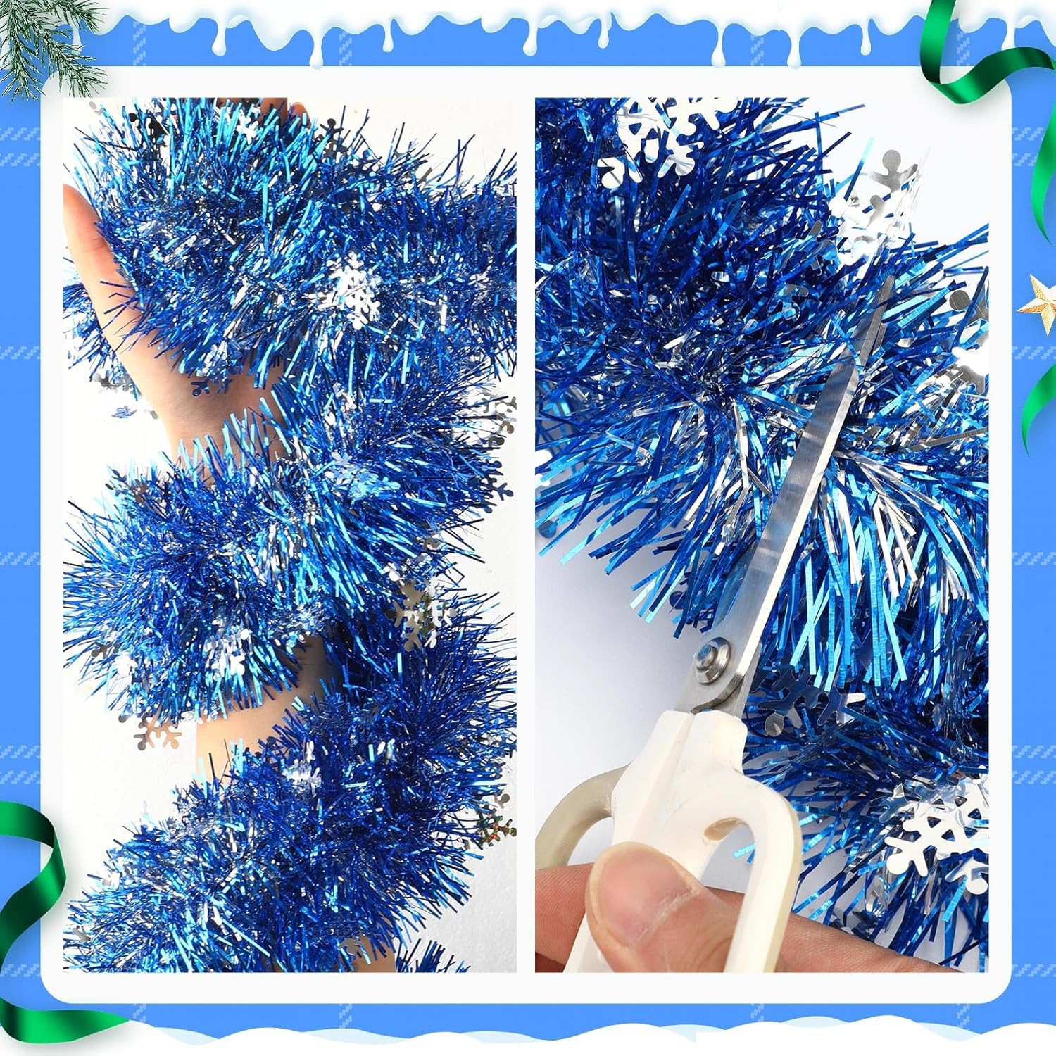 Blue Snowflake Tinsel Garland Winter Wonderland Decorations, Winter Metallic Twi