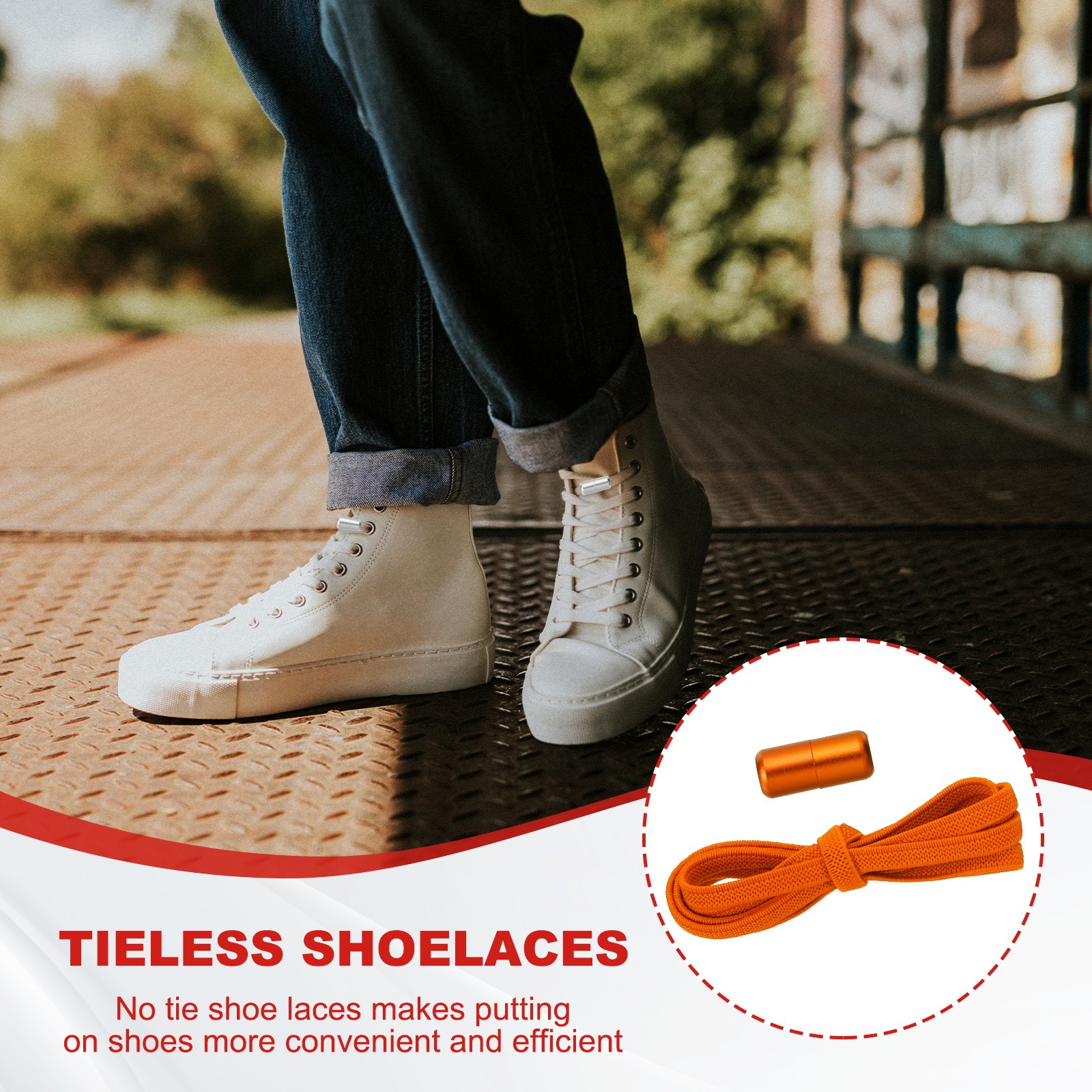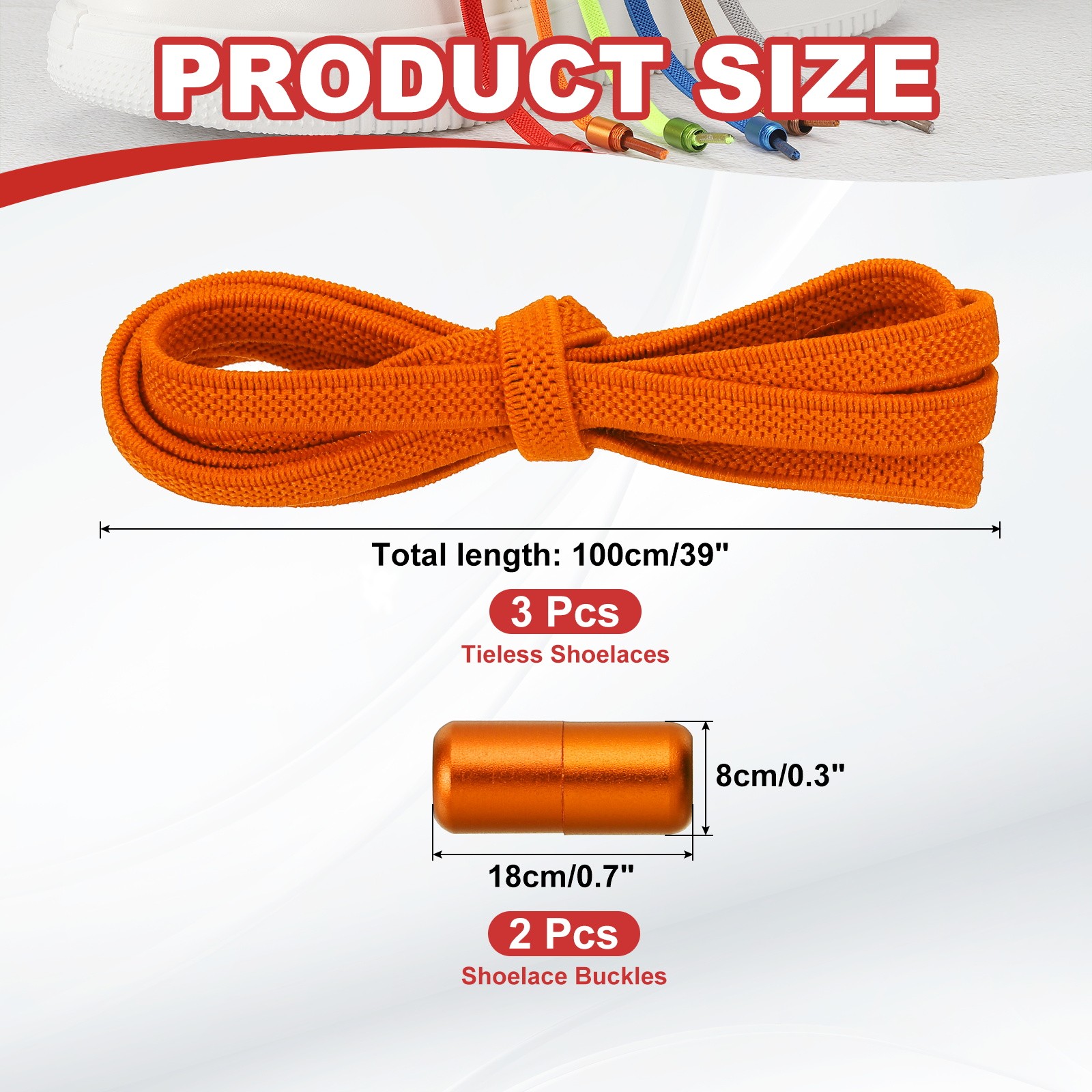 No Tie Shoelaces Tieless Elastic Shoe Laces 3Pcs with 2 Metal Buckles, Orange