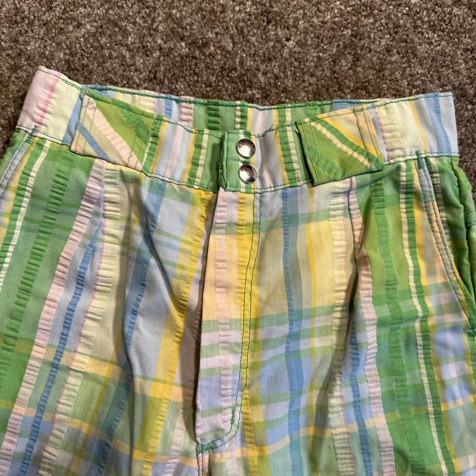 как выглядит Vintage 1970s Wrangler Plaid Bell Bottom Pants Size 11/12 Pastel Green Pink Blue фото
