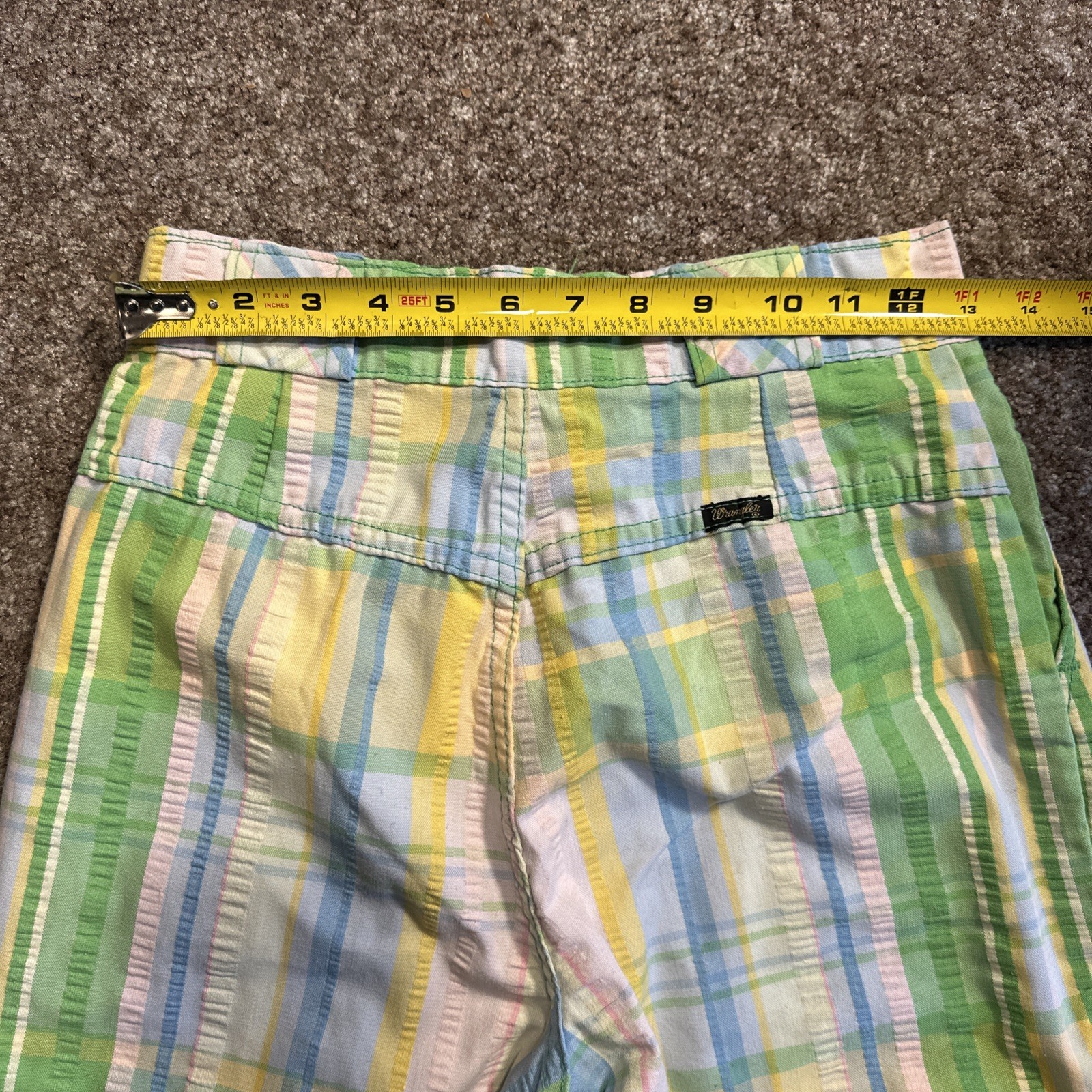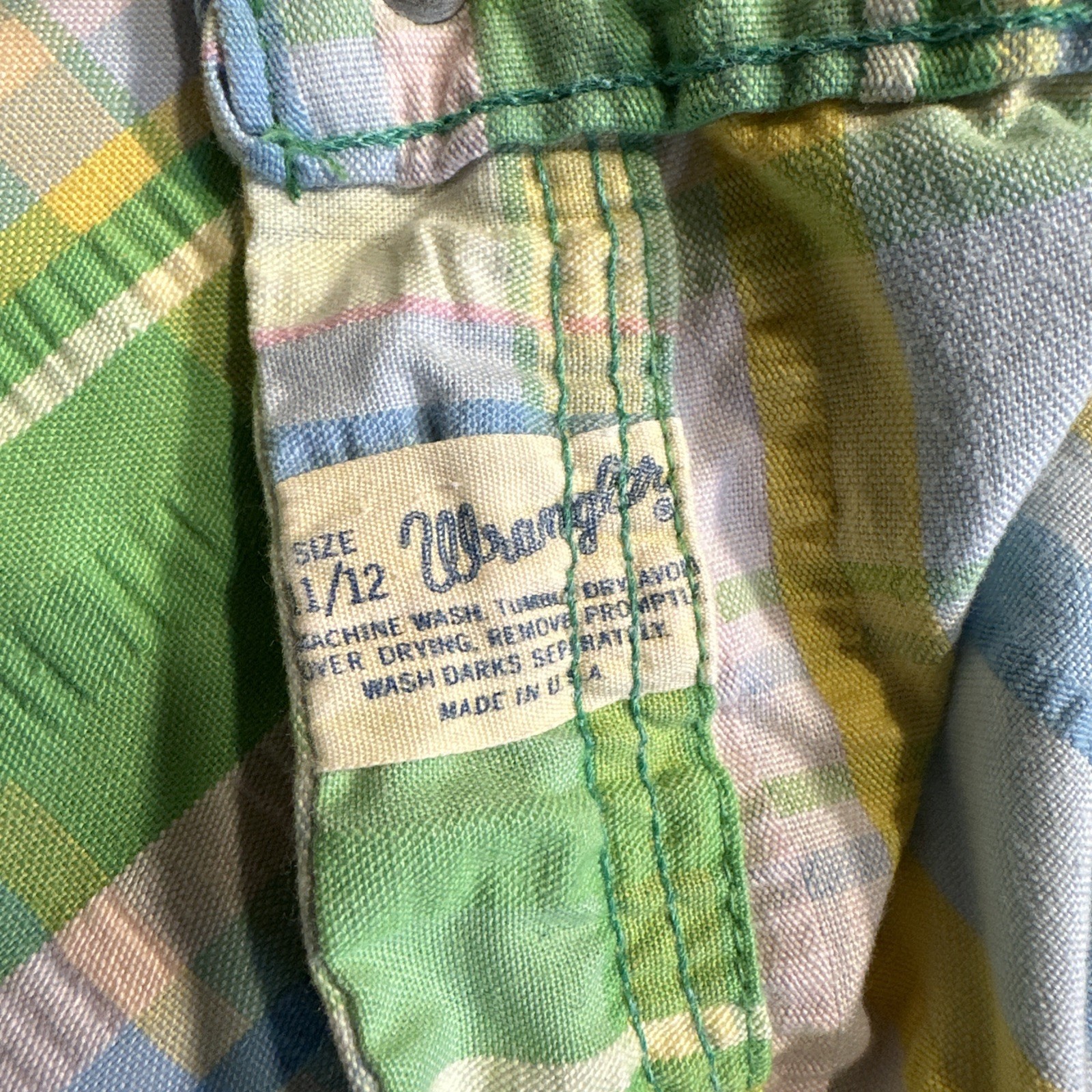Vintage 1970s Wrangler Plaid Bell Bottom Pants Size 11/12 Pastel Green Pink Blue