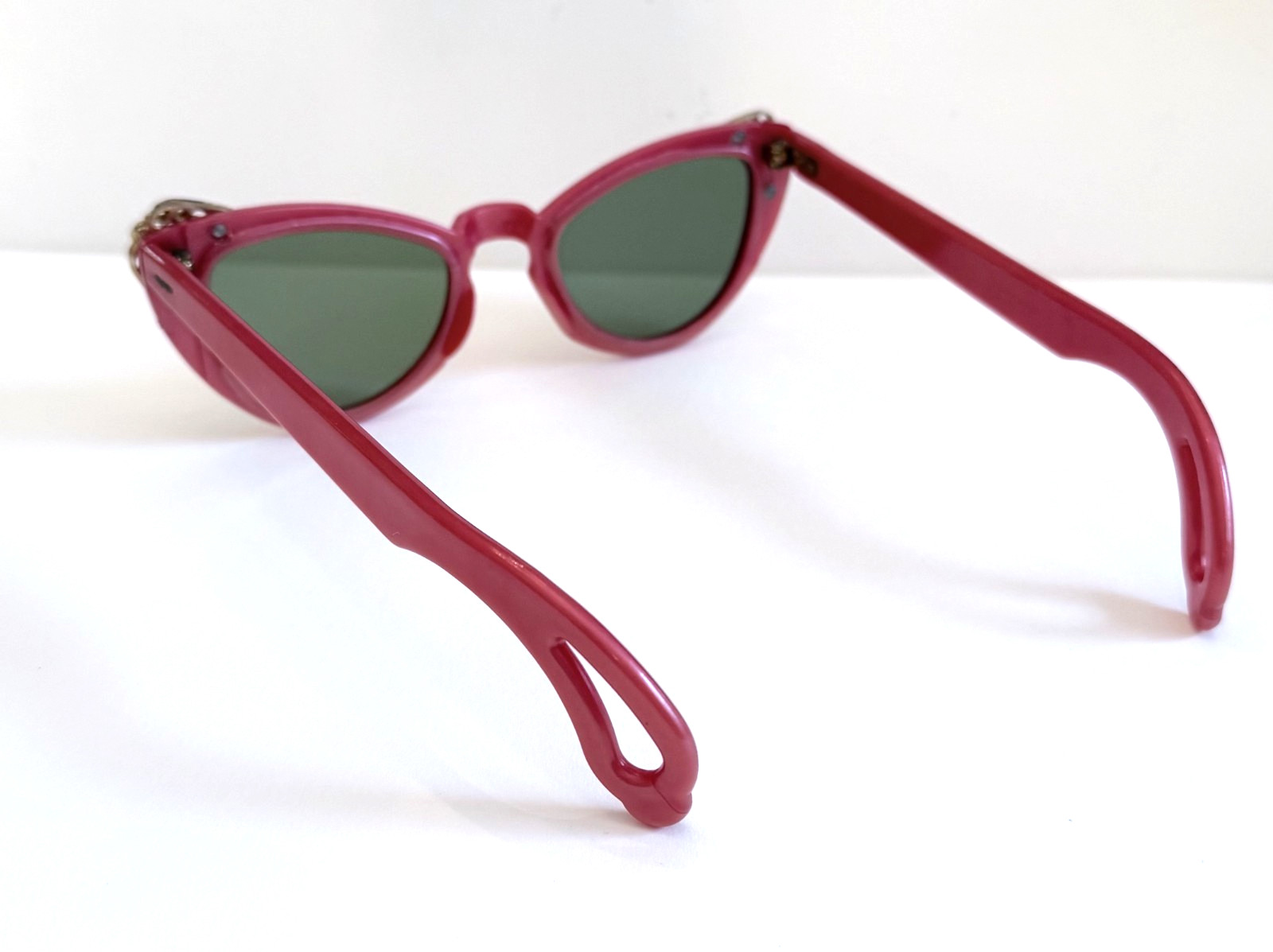 как выглядит Vintage 1950s Red Cat Eye Sunglasses - Plastic Frame and Green Lenses фото