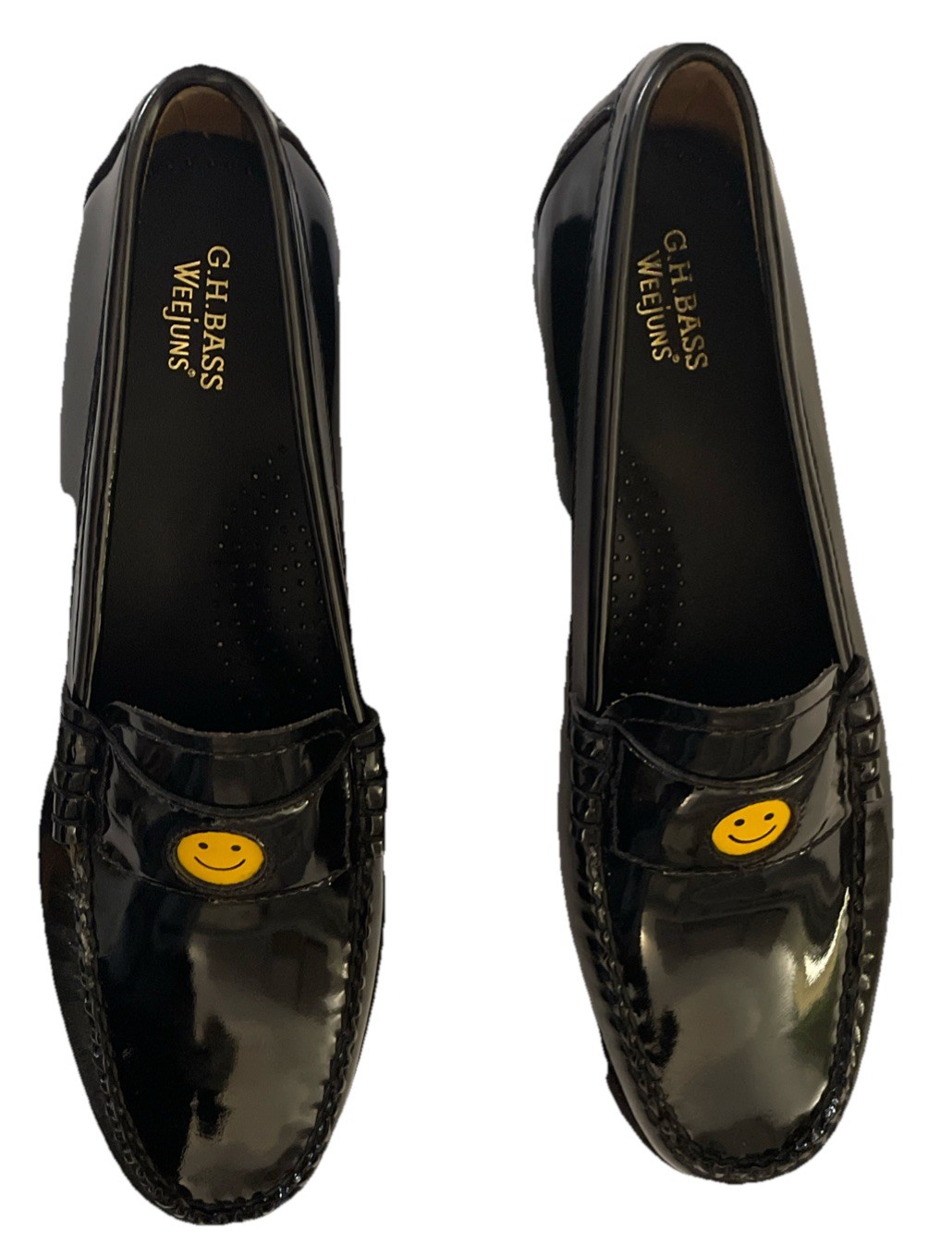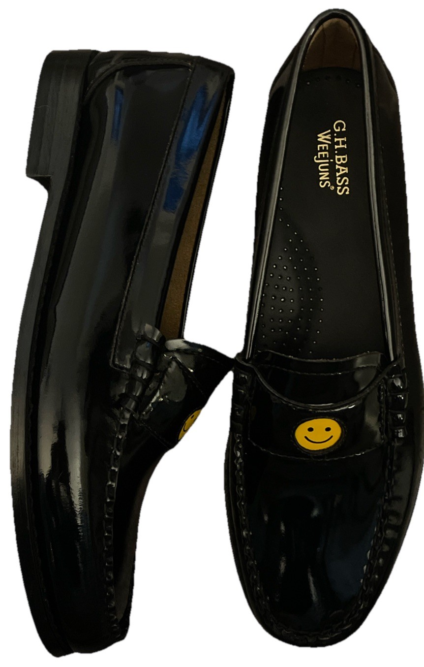 как выглядит NEW G.H.BASS BLACK PATENT LEATHER Whitney SMILEY Emoji Weejuns Loafer SZ 9 фото