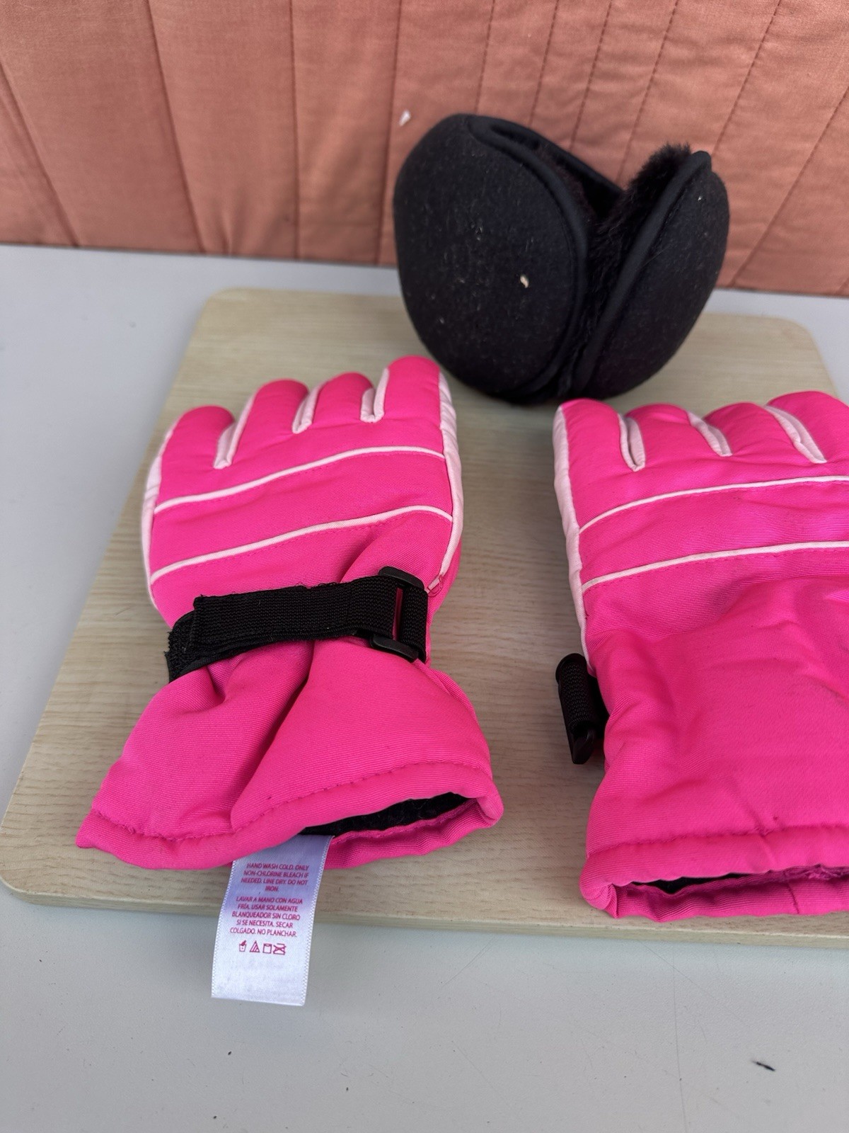 как выглядит Girl s Winter Snow Gloves Insulated Pink, N Black Waterproof S-M N Earmuffs фото