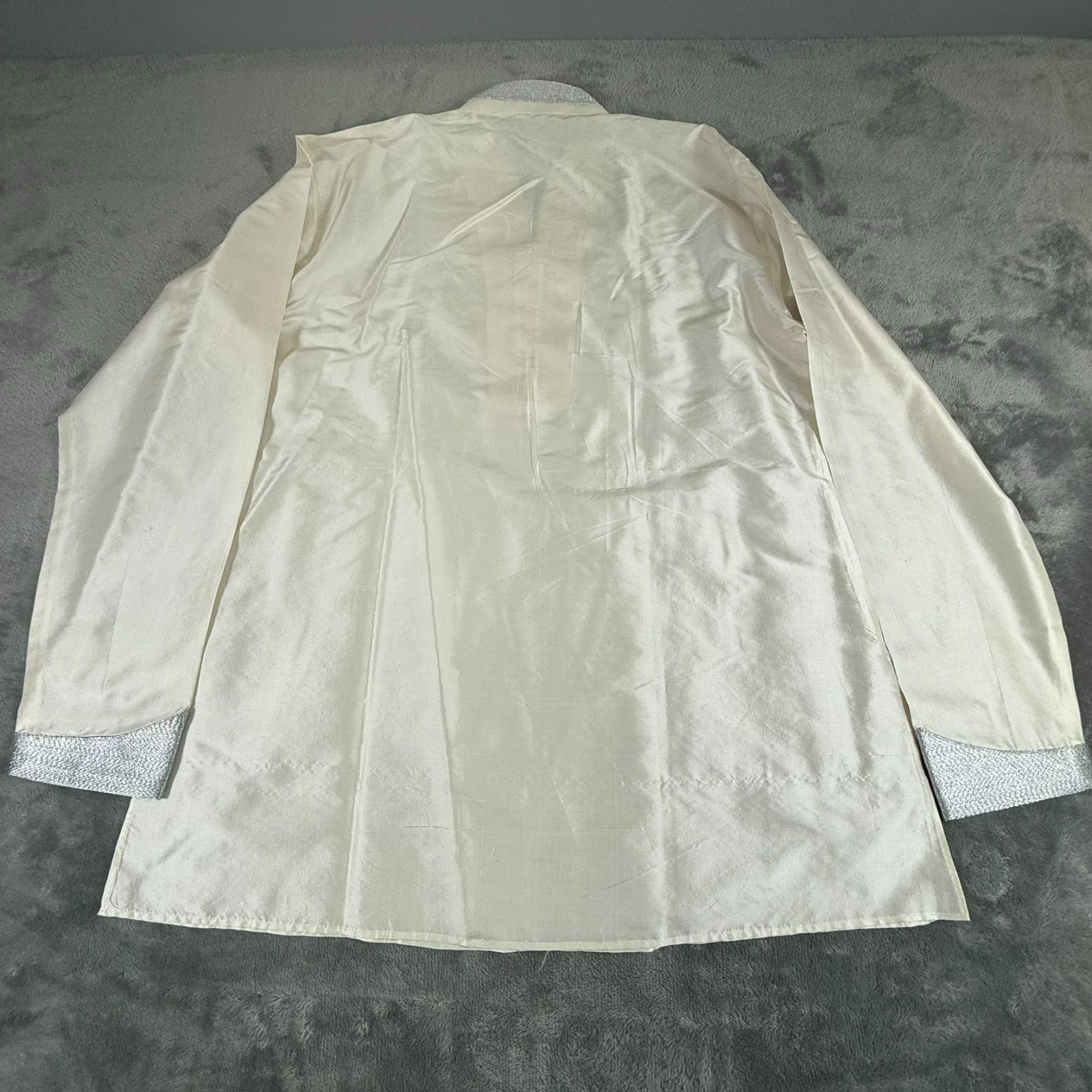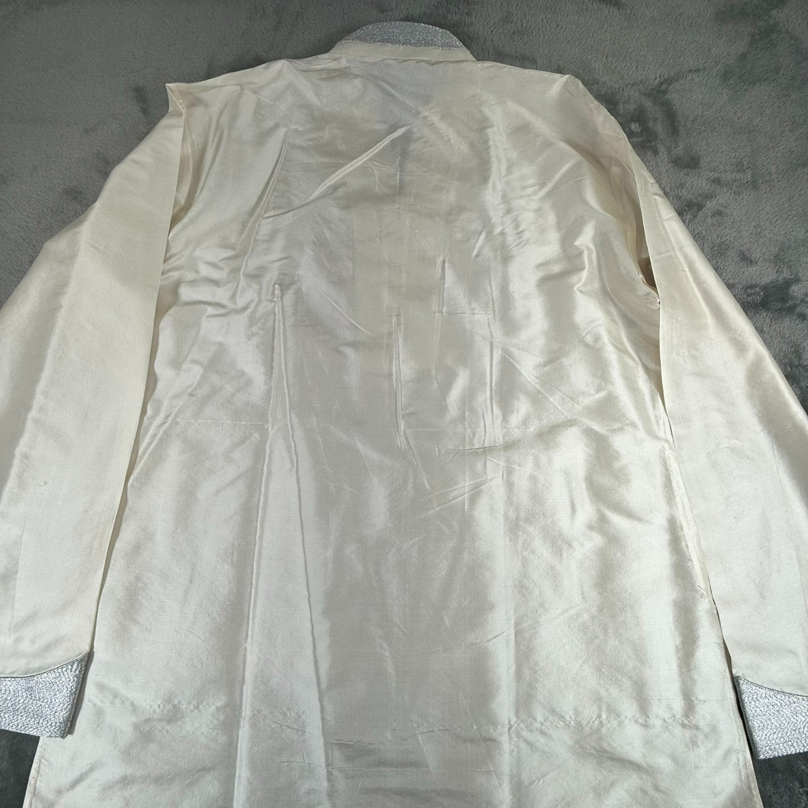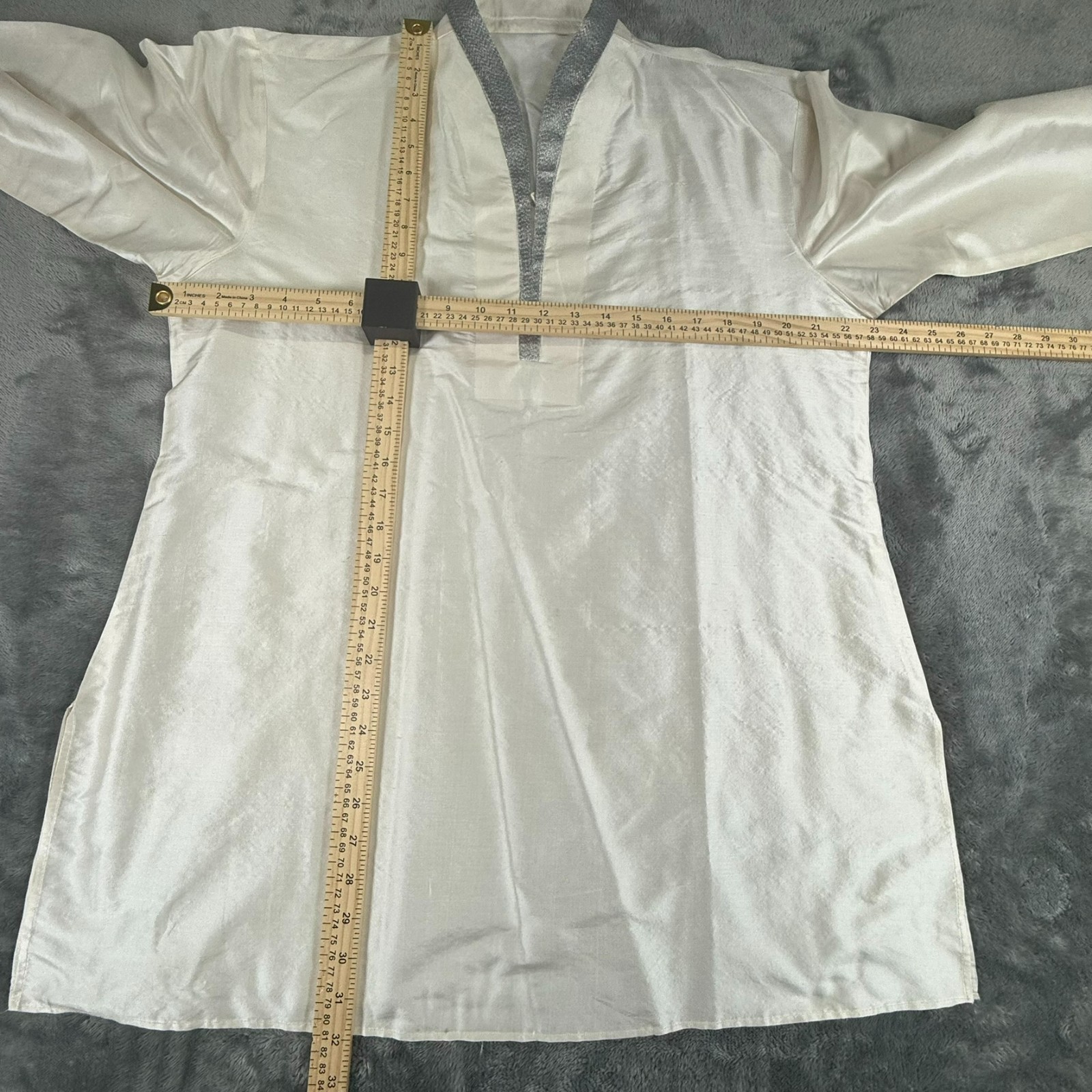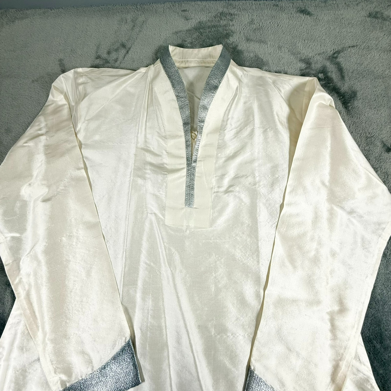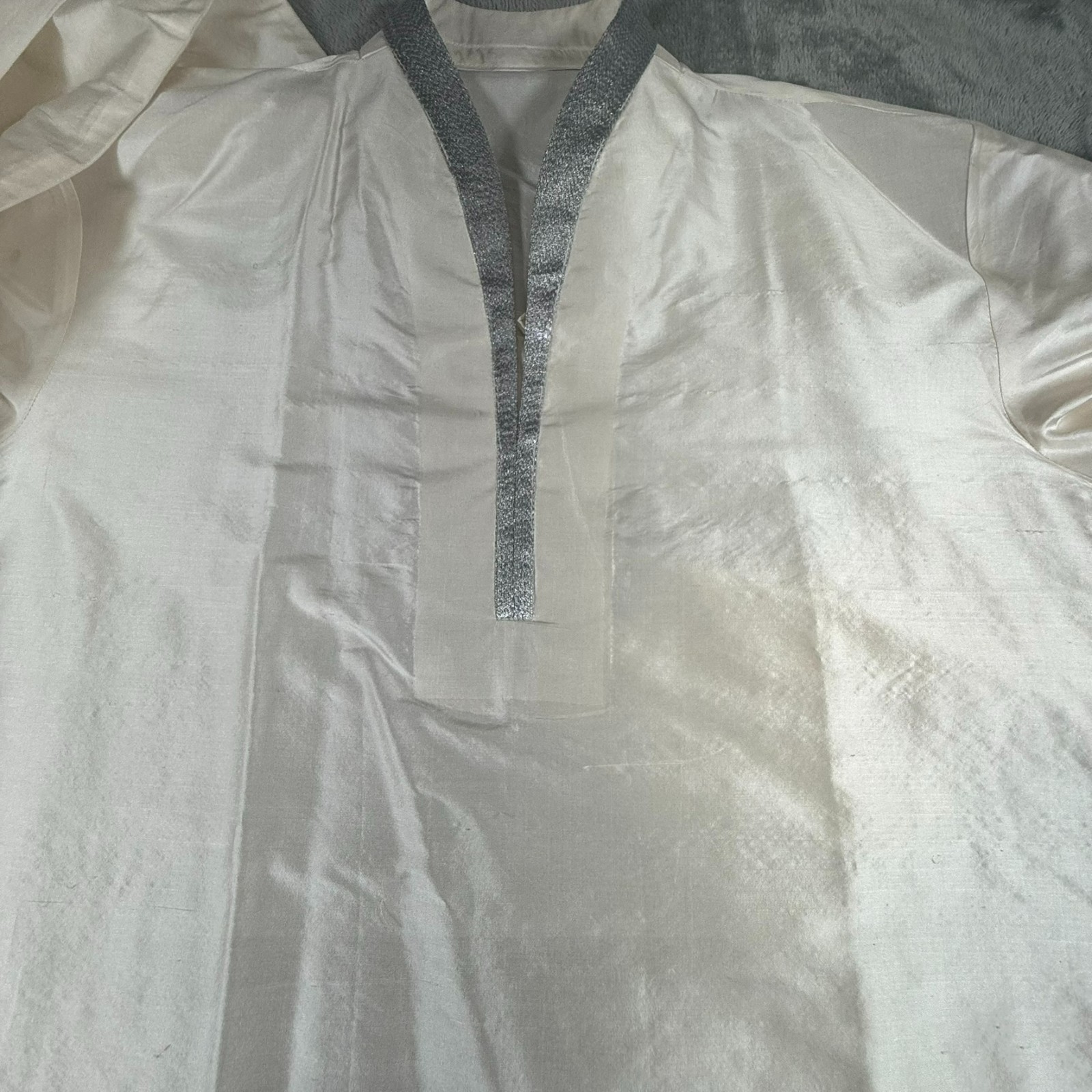 Men's Long Sleeve Kurta Tunic Off White Silver Trim See Pictures for Size