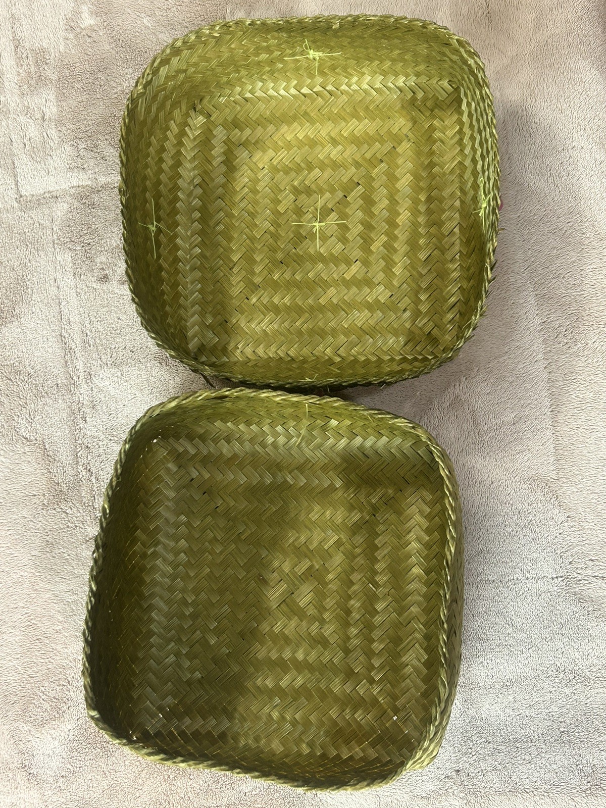 • Green Hand Woven Basket Beads Lid Organize Home Decor Square Box