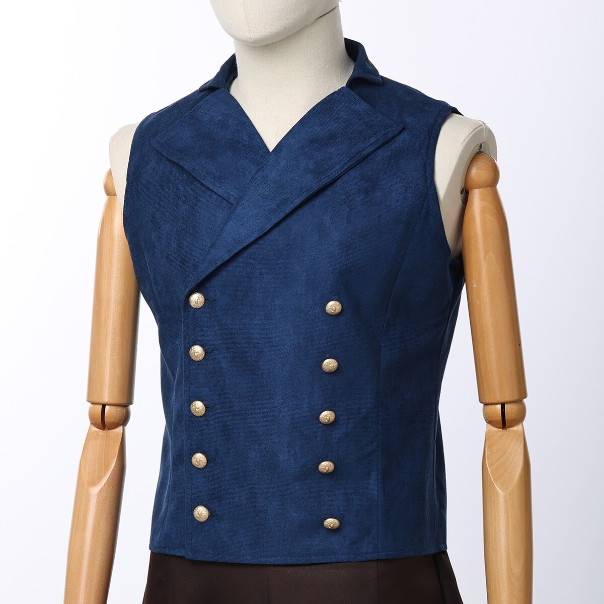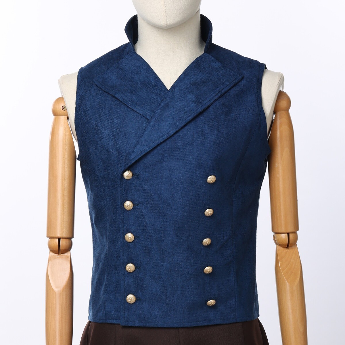 Men Victorian Vest Gothic Steampunk Regency Waistcoat Double Breasted Button