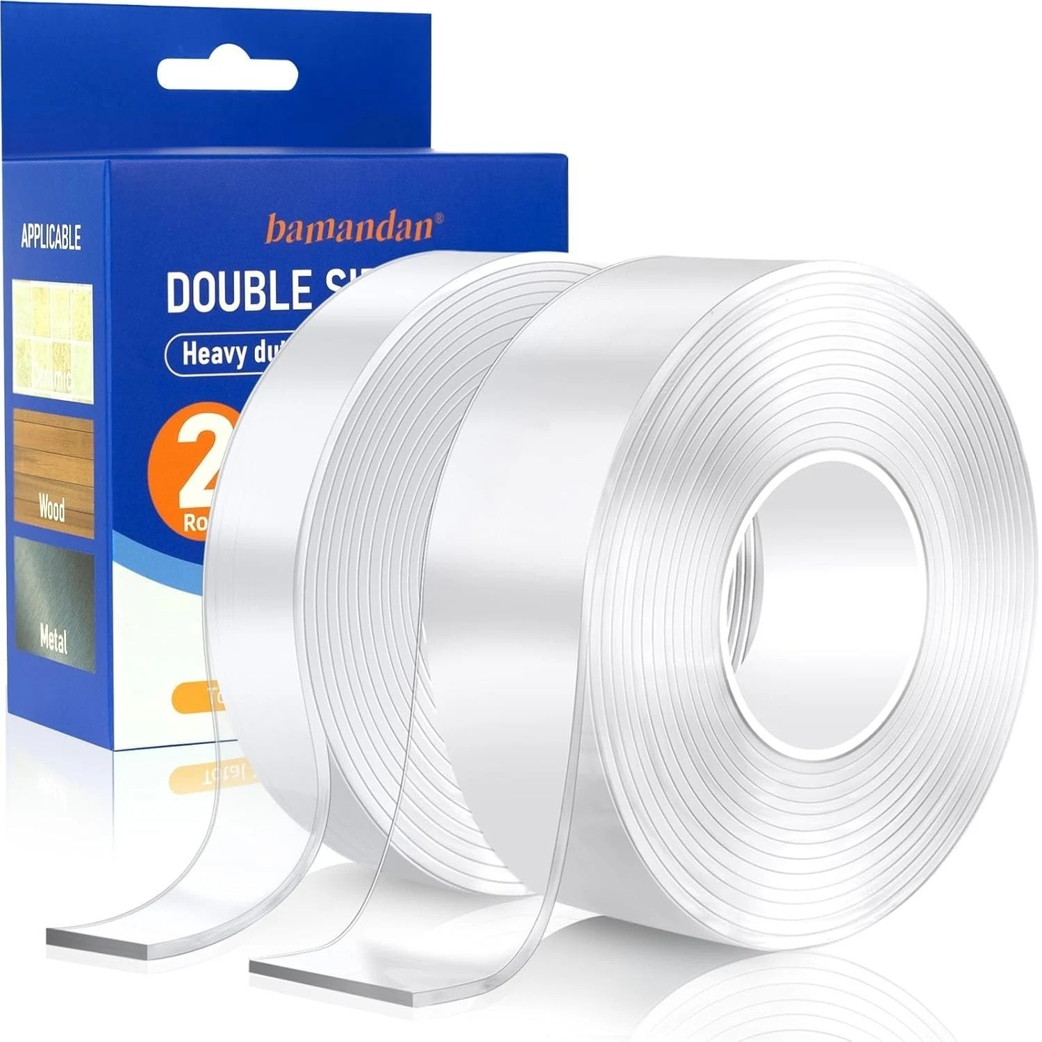 Strong Double Sided Tape Heavy Duty, 2 Rolls Removable Two Clear