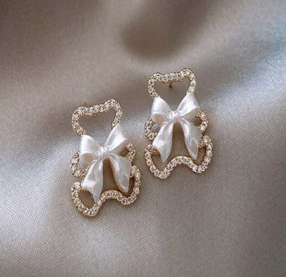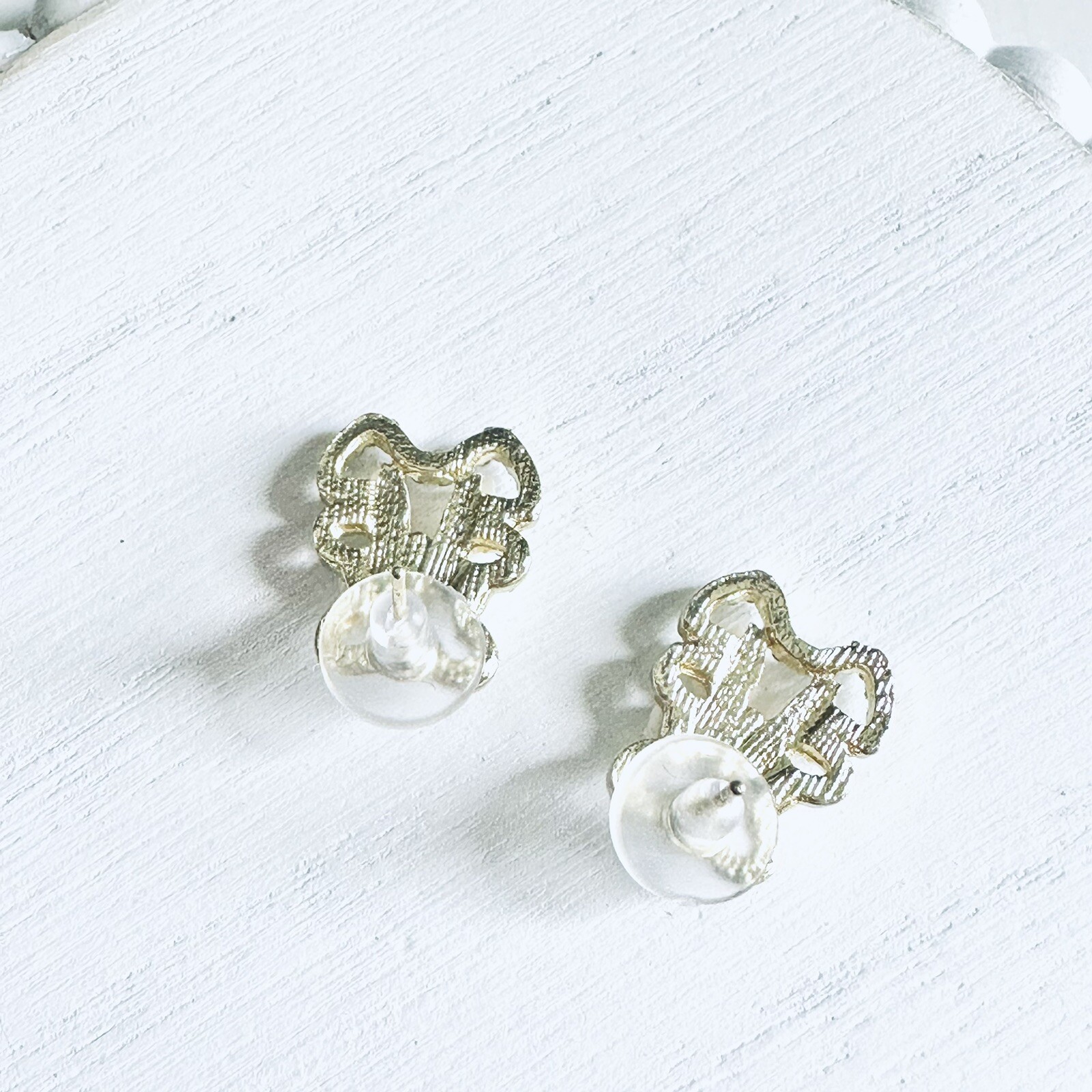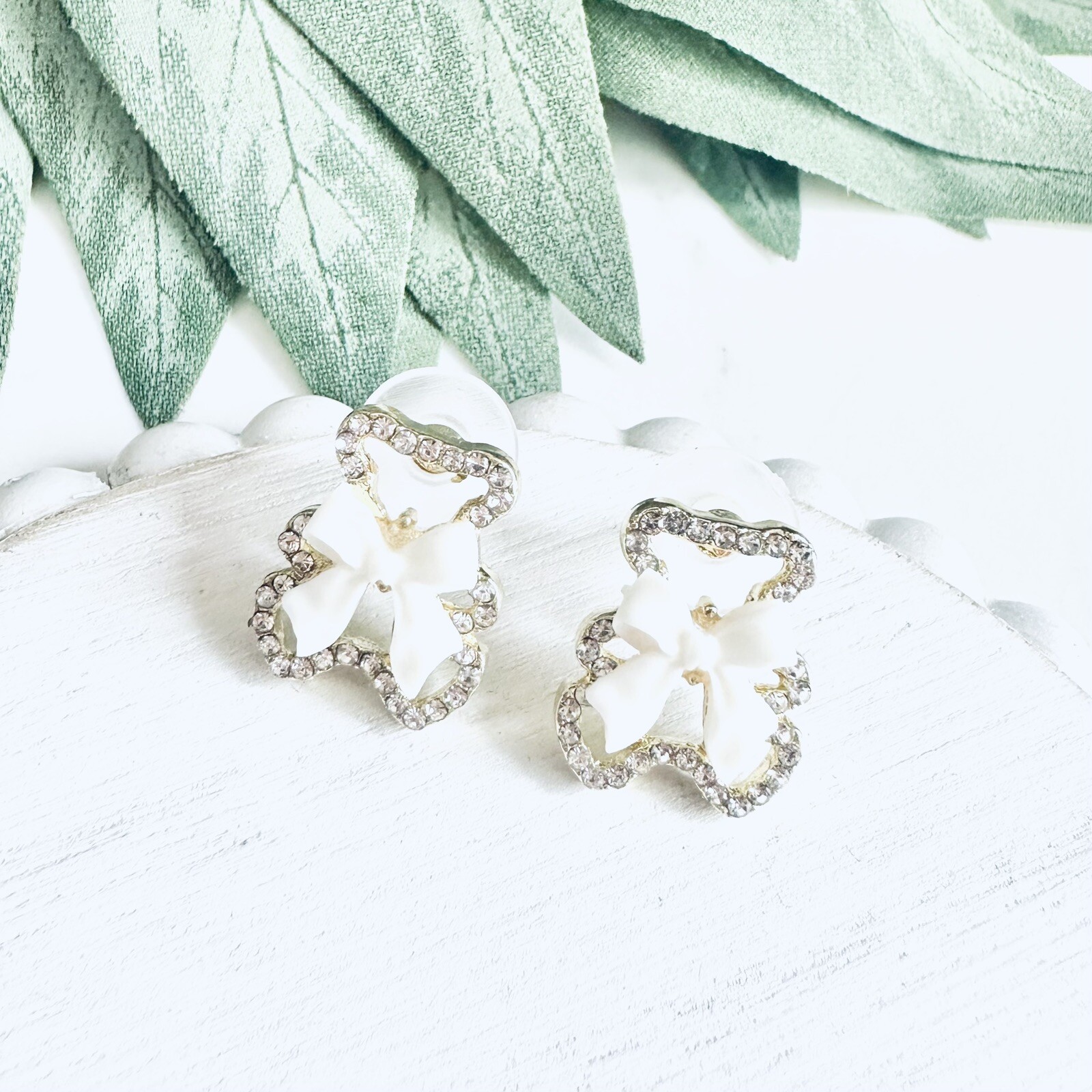 Tiny Rhinestone Teddy BEAR Bow Tie Earrings Stud Delicate Crystal Sparkle NEW