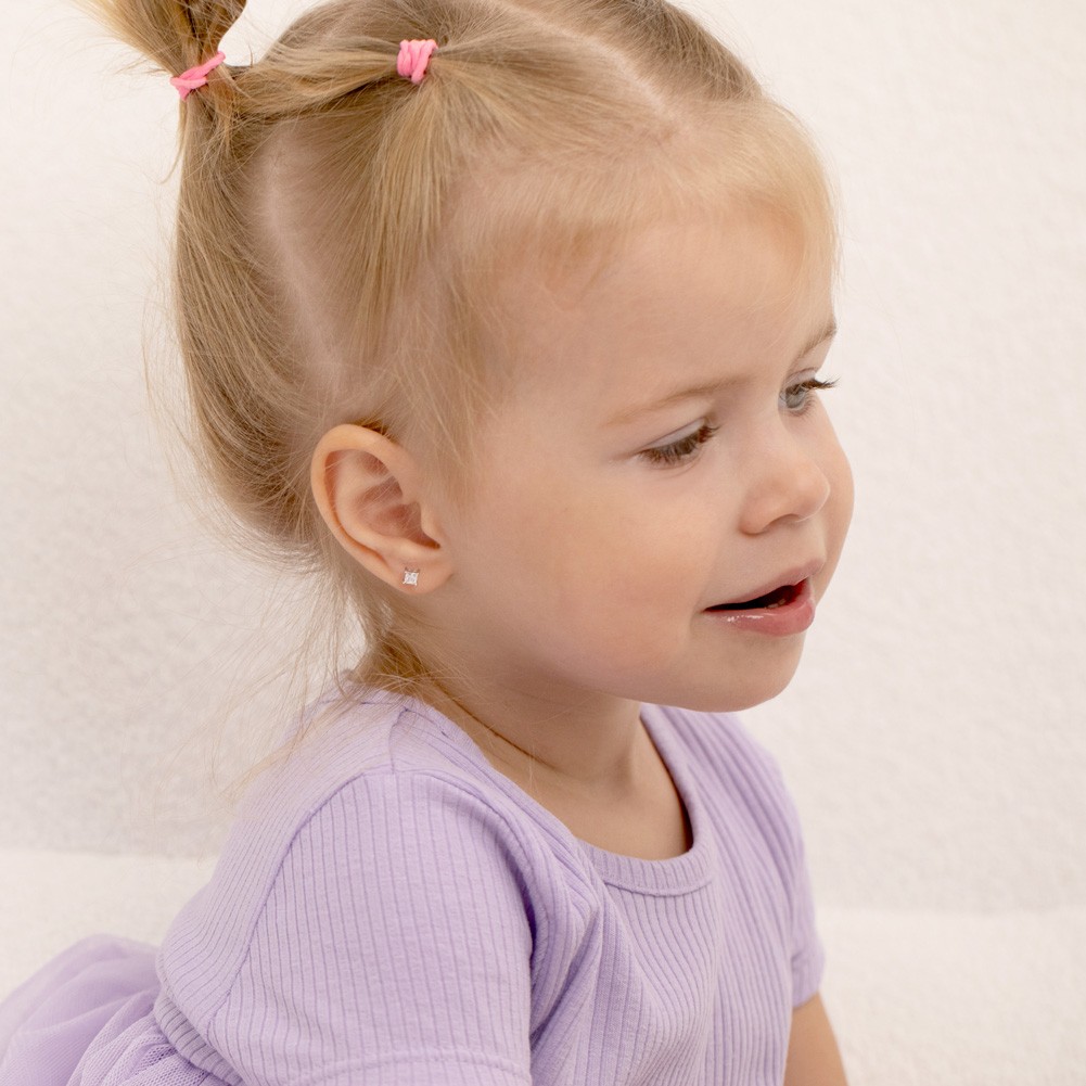 925 Sterling Silver 3mm Square Solitaire CZ Stud Screw Back Earrings Toddlers