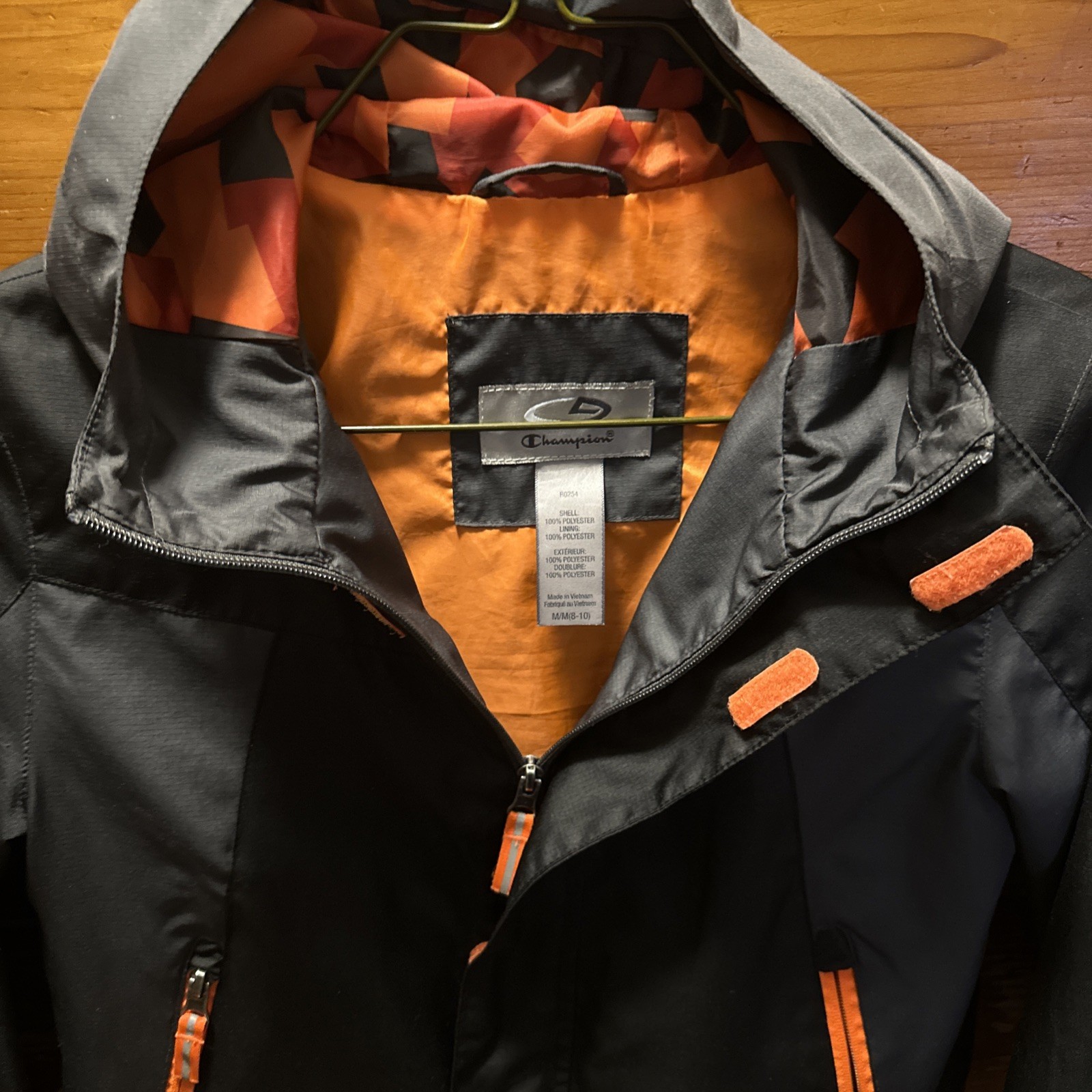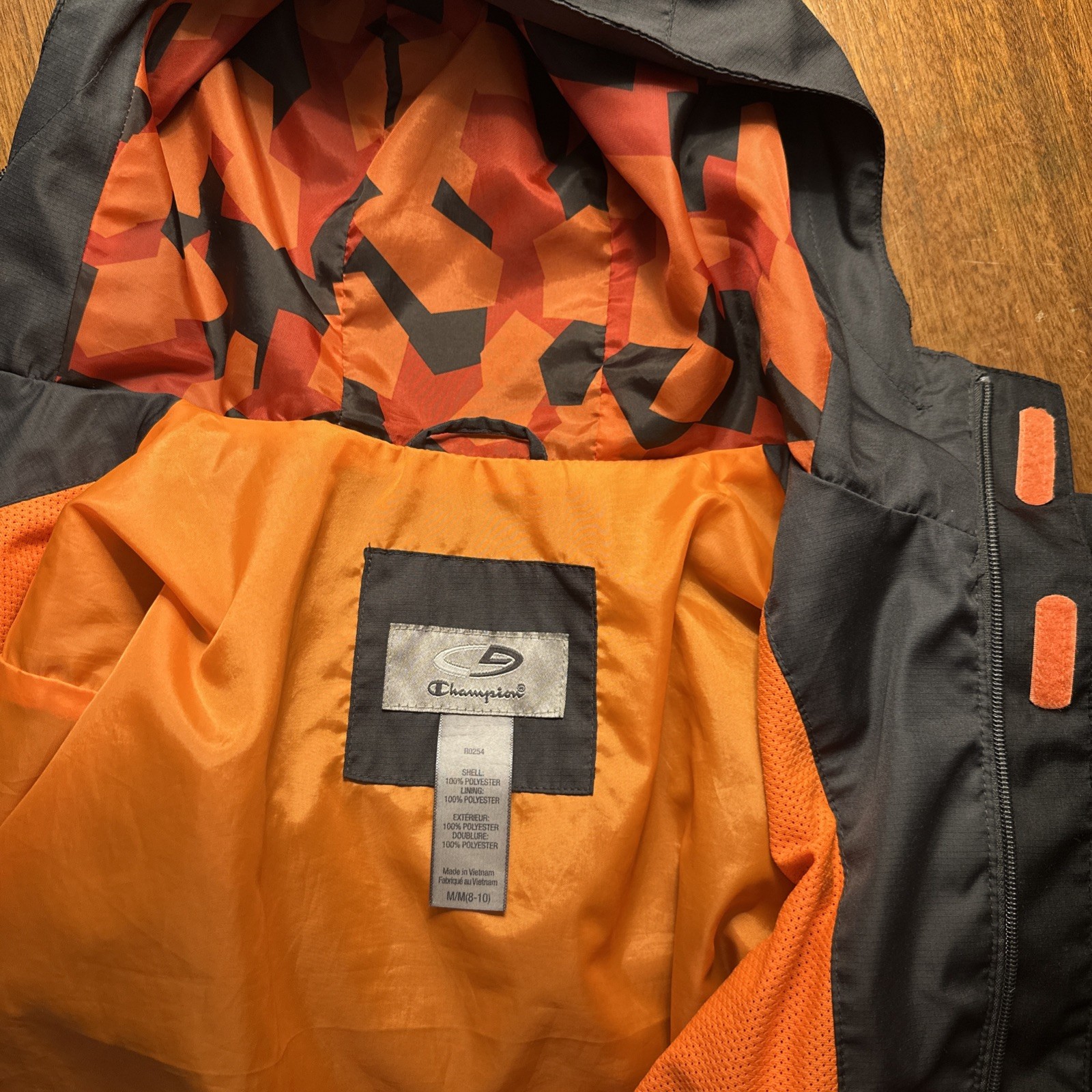 как выглядит Champion Black With Orange Accents Zip Up Hooded Jacket Youth SZ 8-10 фото