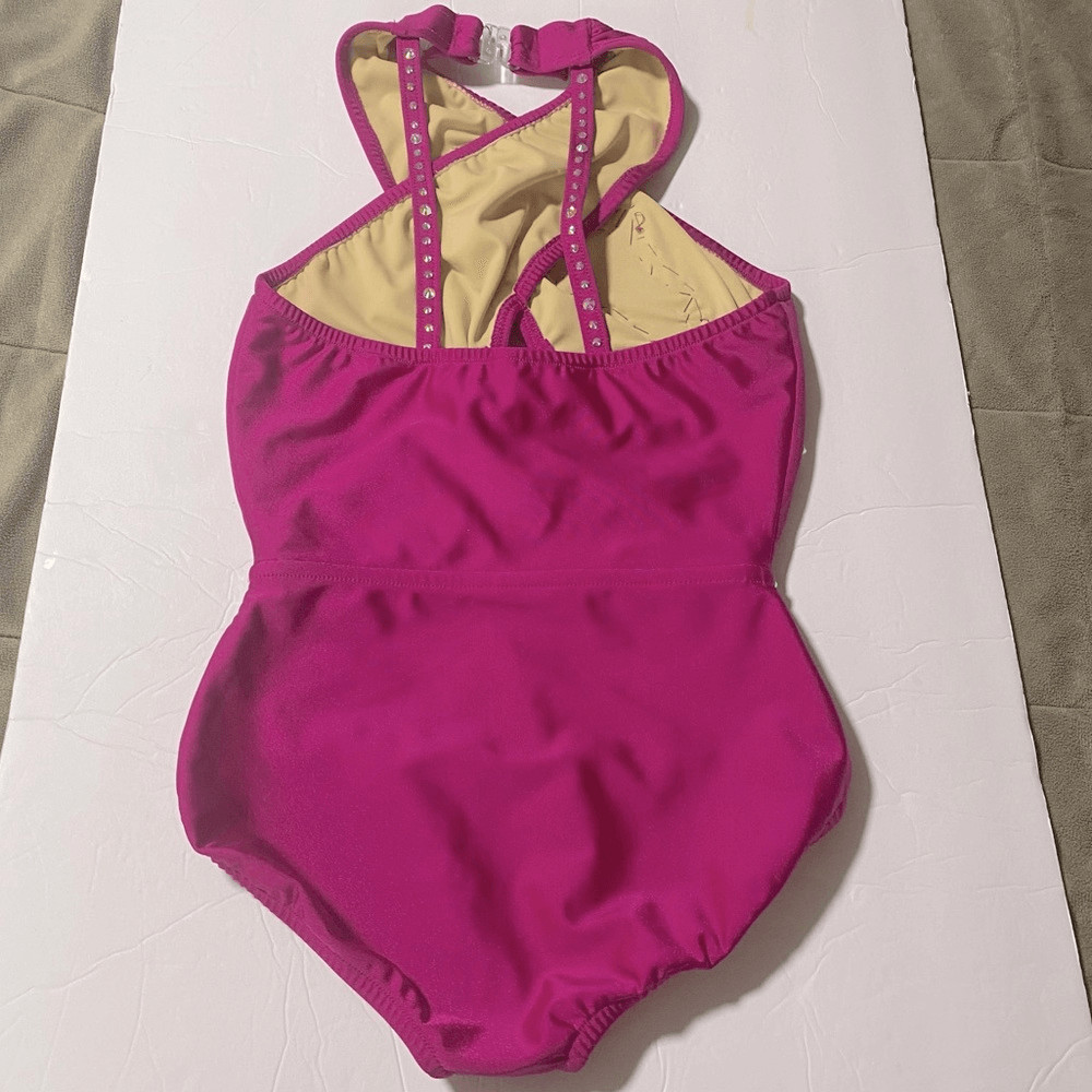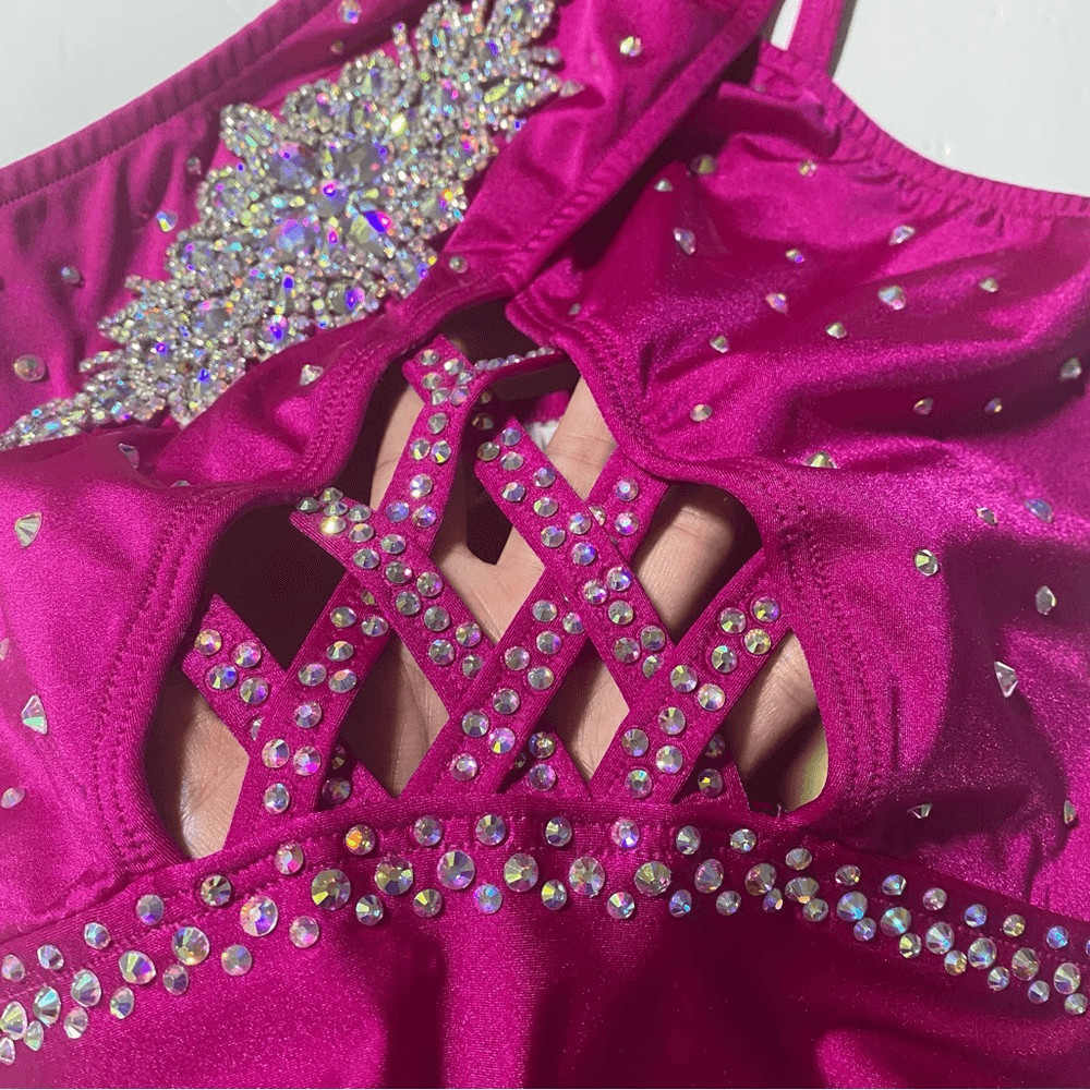как выглядит Custom made solo dance costume hot pink rhinestone embellished SA-Small adult фото