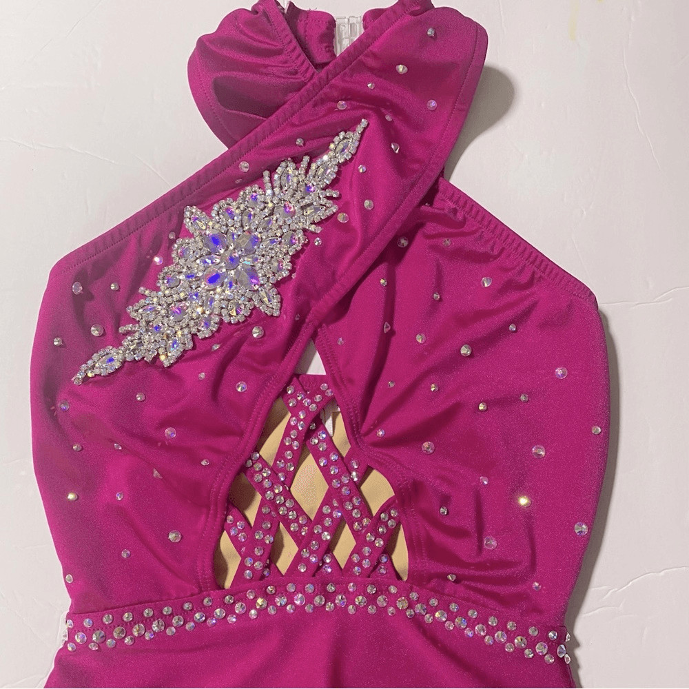 Custom made solo dance costume hot pink rhinestone embellished SA-Small adult