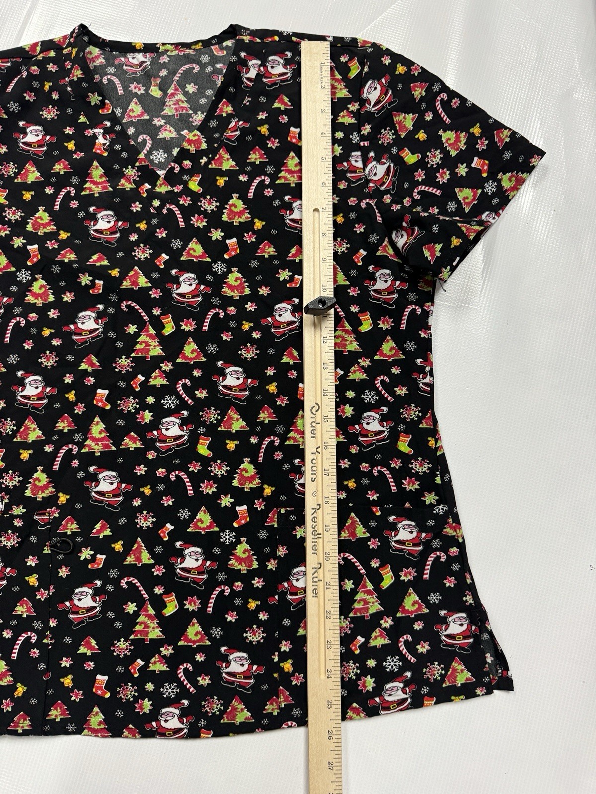 как выглядит GT Performance Scrubs Santa Christmas Tree Scrub Top Black F48xm Size L фото