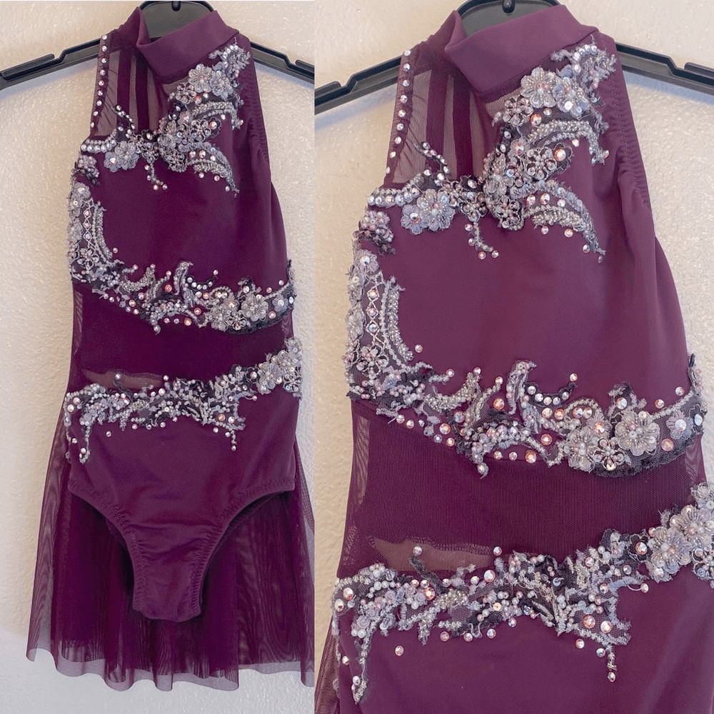 Custom Solo lyrical embellished rhinestone Dance Costume purple leotard dress MC