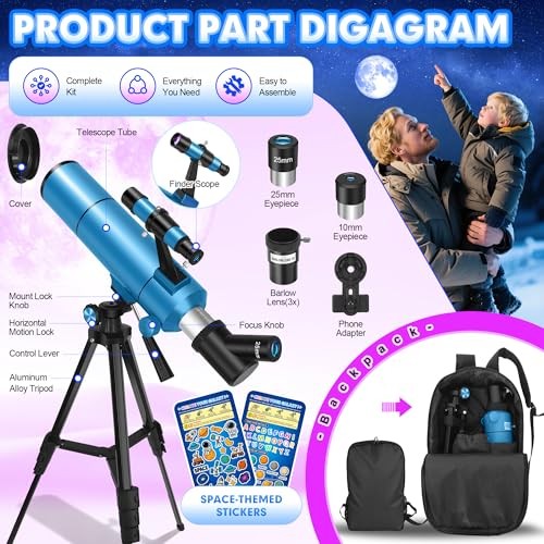 Adults Kids 80mm Refractor Telescope 500mm 20x-150x Portable Tripod