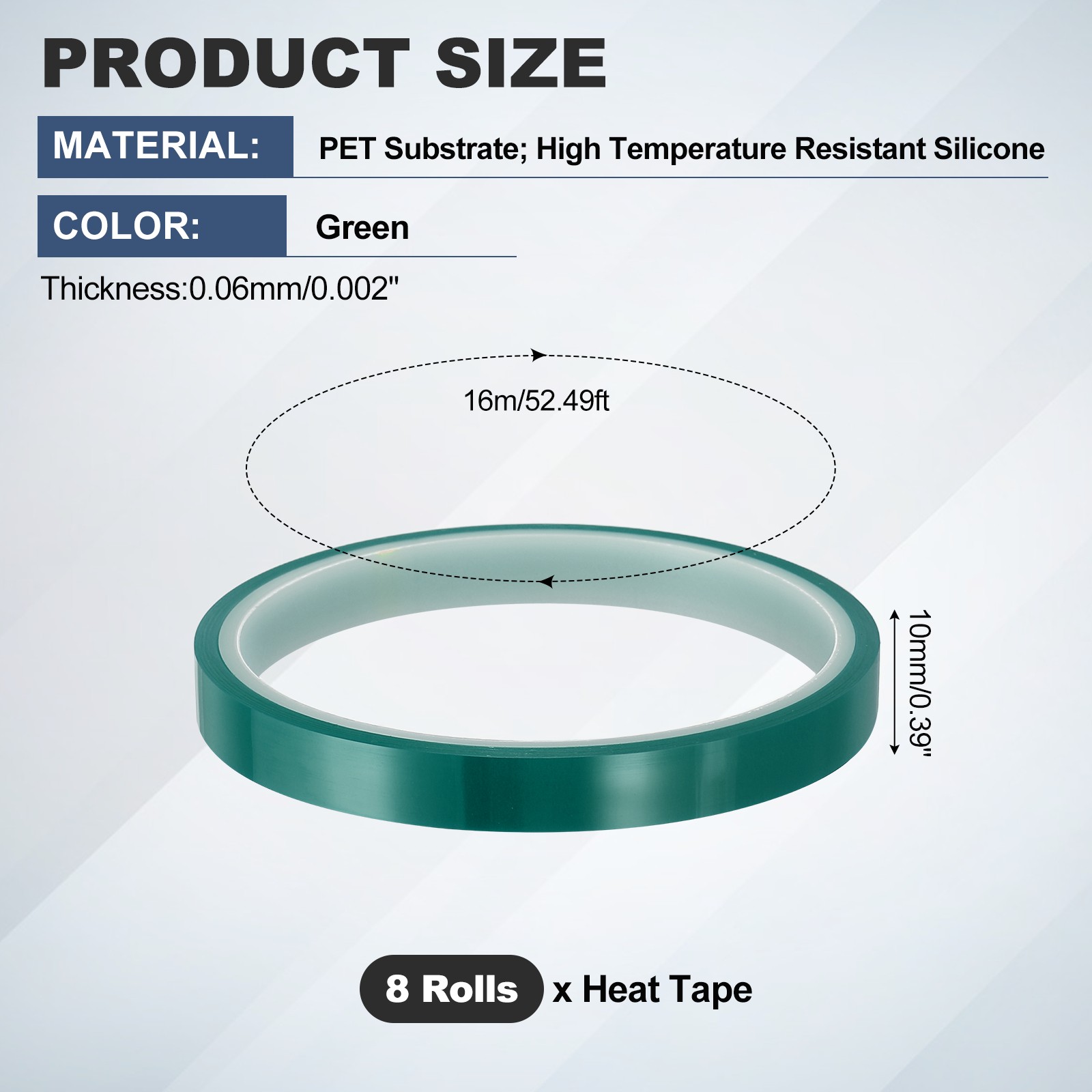8 Rolls Heat Tape, 10mm x 16m 52FT High-Temperature Resistant Tape, Green