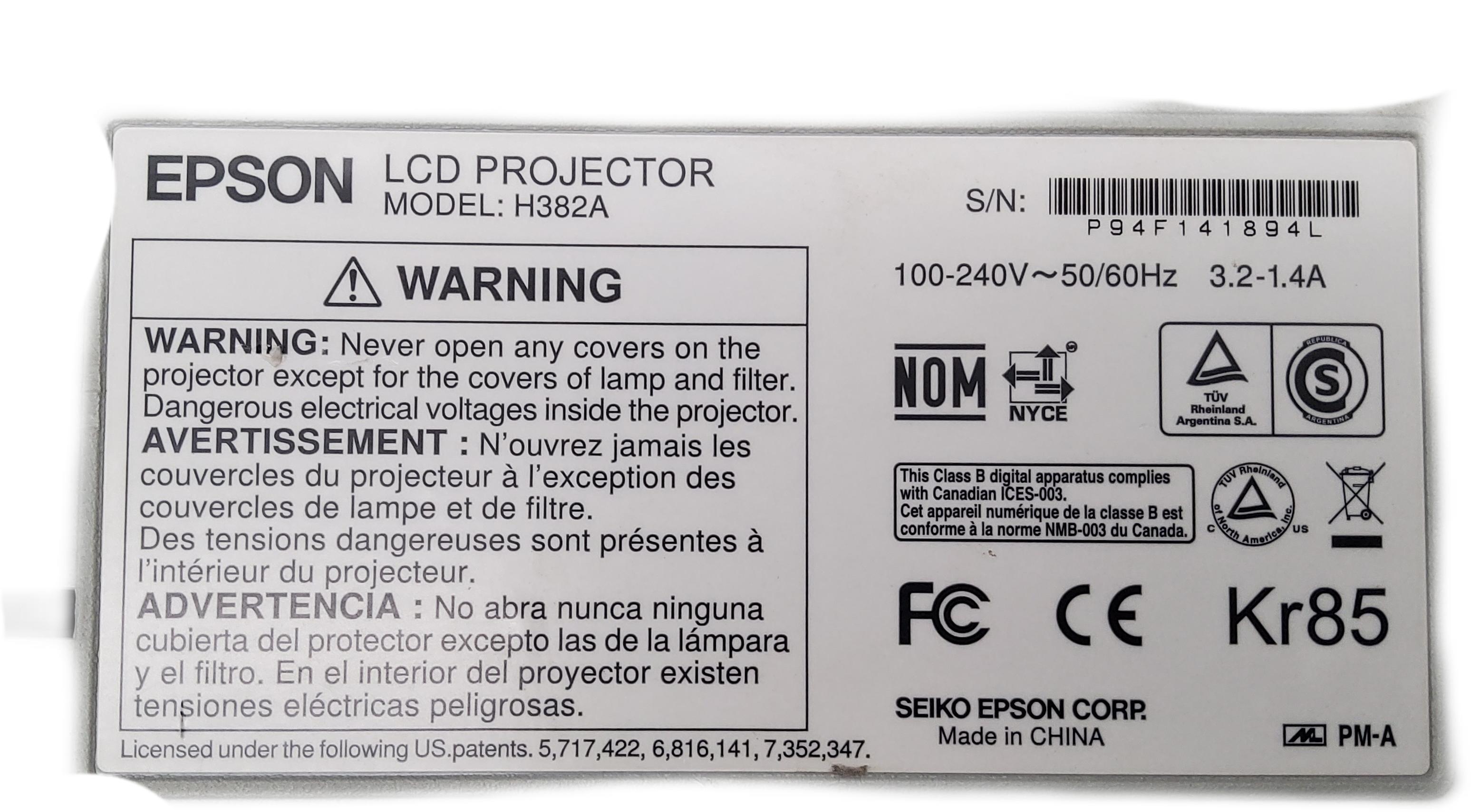 Модель: PowerLite 93 LCD Projector H382A