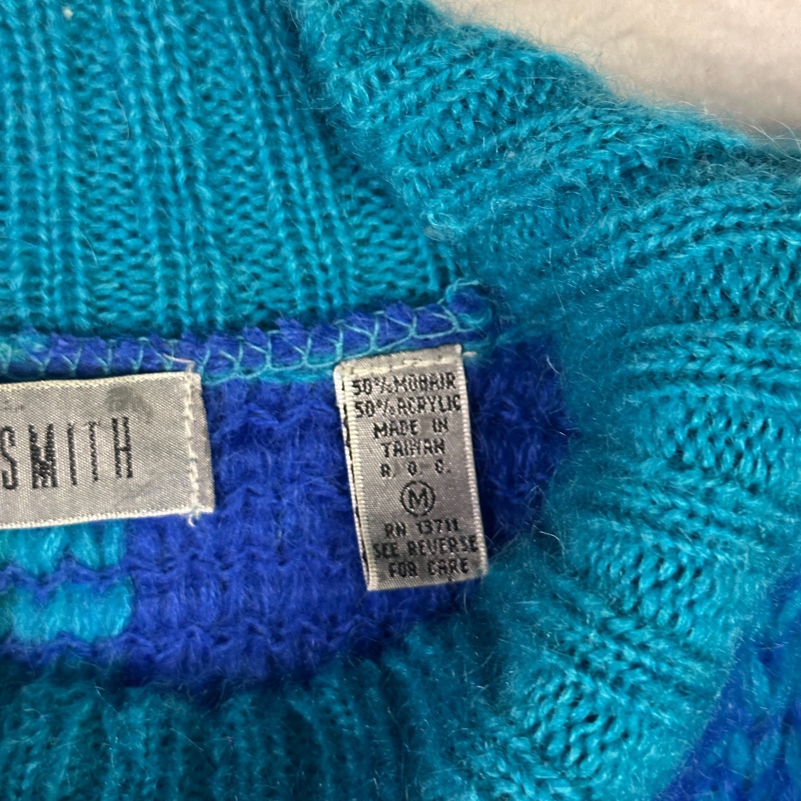 как выглядит Vintage Amanda Smith Mohair Colorful Mock Neck Sweater Abstract Knit 90s Size M фото