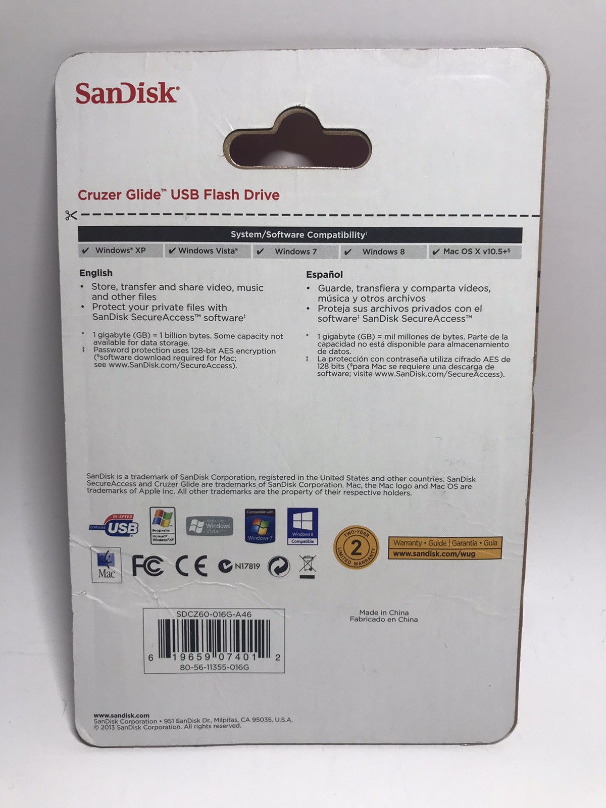 SanDisk Cruzer Glide 16GB USB Flash Drive - New