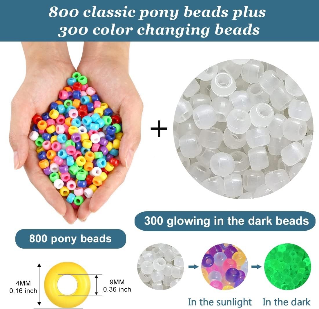 All-in-One Bead Set: 800 Classic 300 Color Changing Pony Beads - Craft Ready