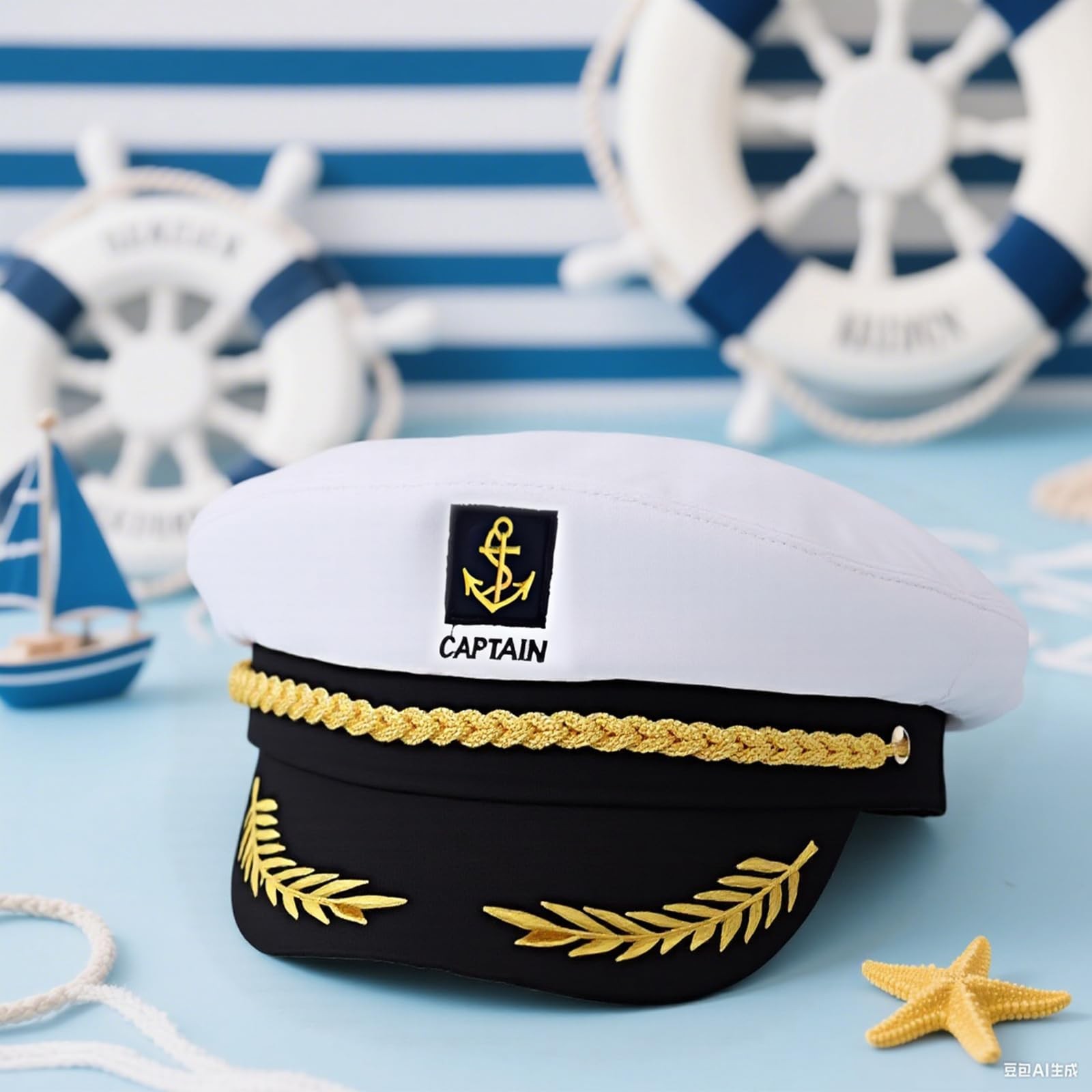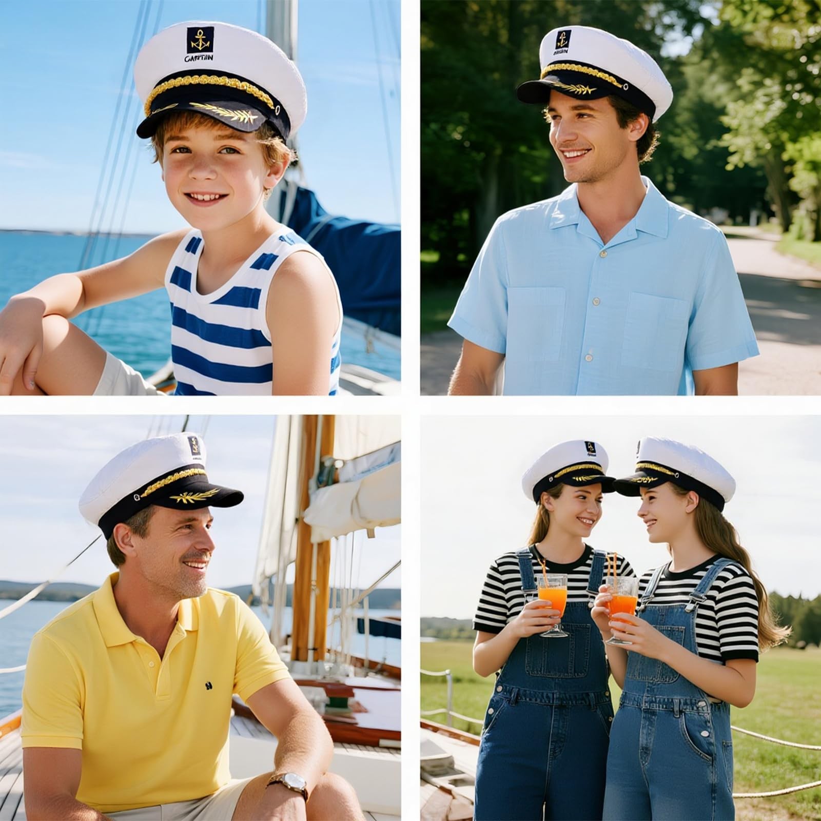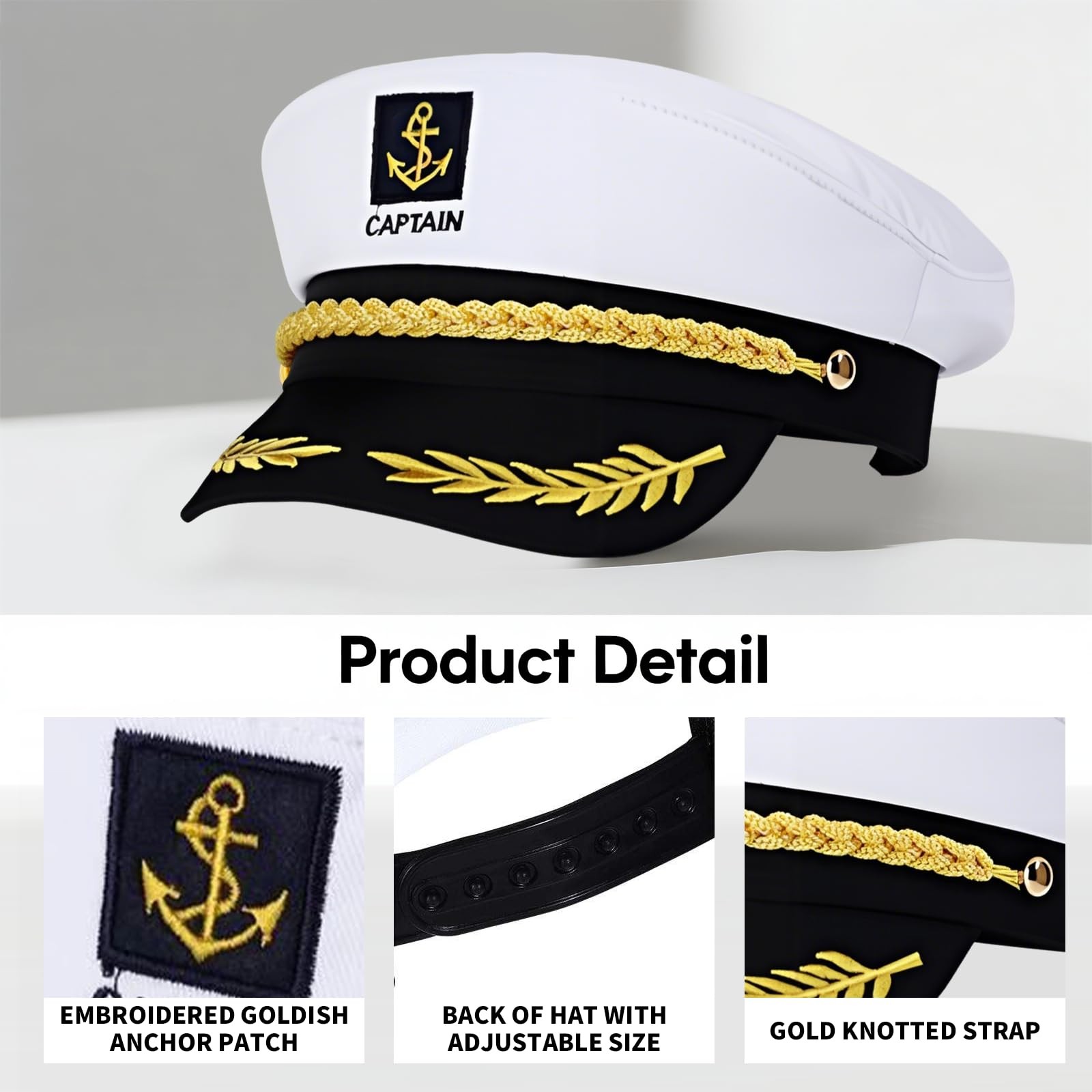Captain Hat, Sailor Skipper Cap,Adjustable Sailor Marine Admiral Hat for Hall...