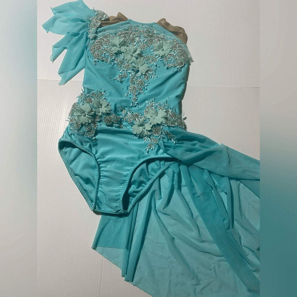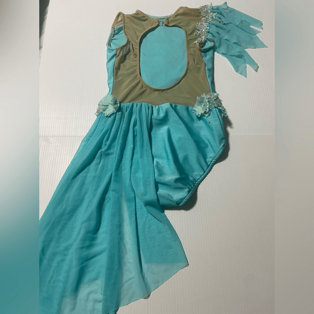 как выглядит Glamour solo dance costume Aqua blue lyrical rhinestoned dress SC IC- child фото