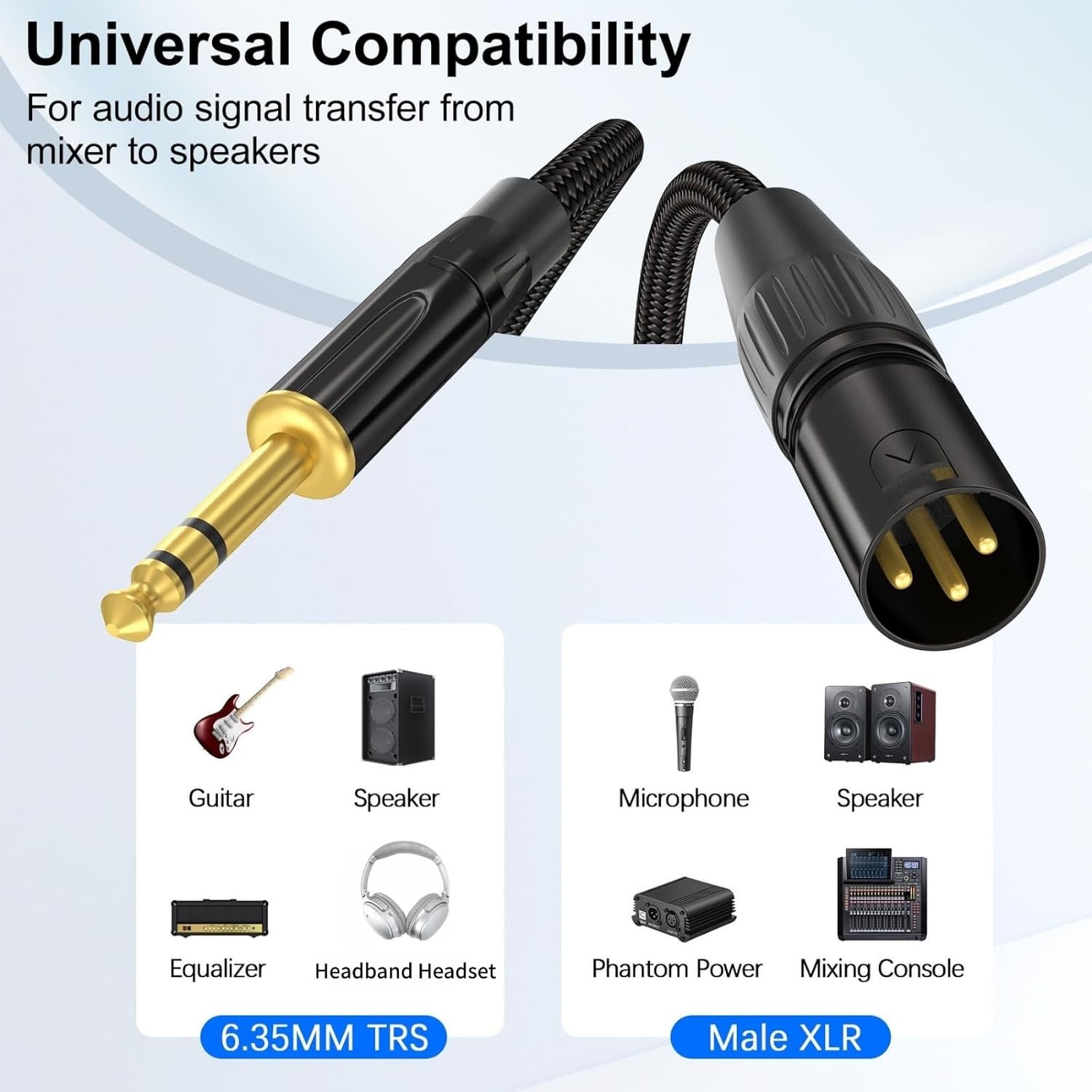 XLR Male to 1/4 TRS Male Balanced Audio Cable 6.35mm Cord 6FT DJ Studio