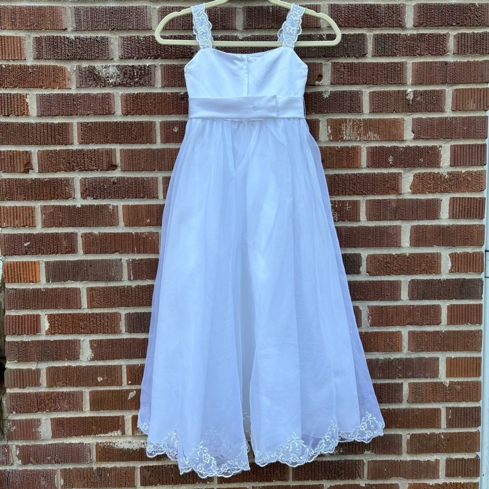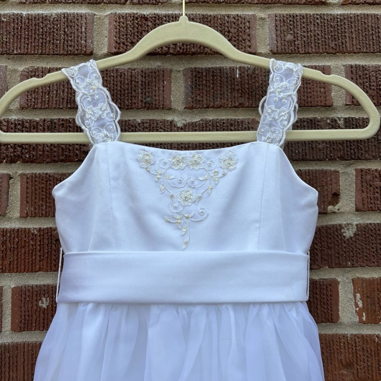 Davids Bridal Flower Girl Size 7 Lace shoulder straps White Dress Gown