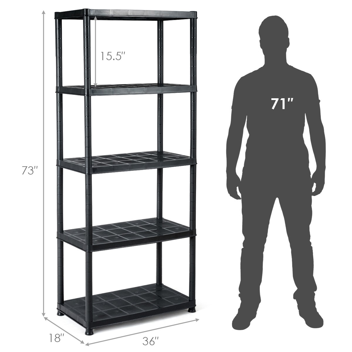 5-Tier Storage Shelving Heavy Duty Rack Practical 36L X 18W X 73H Black