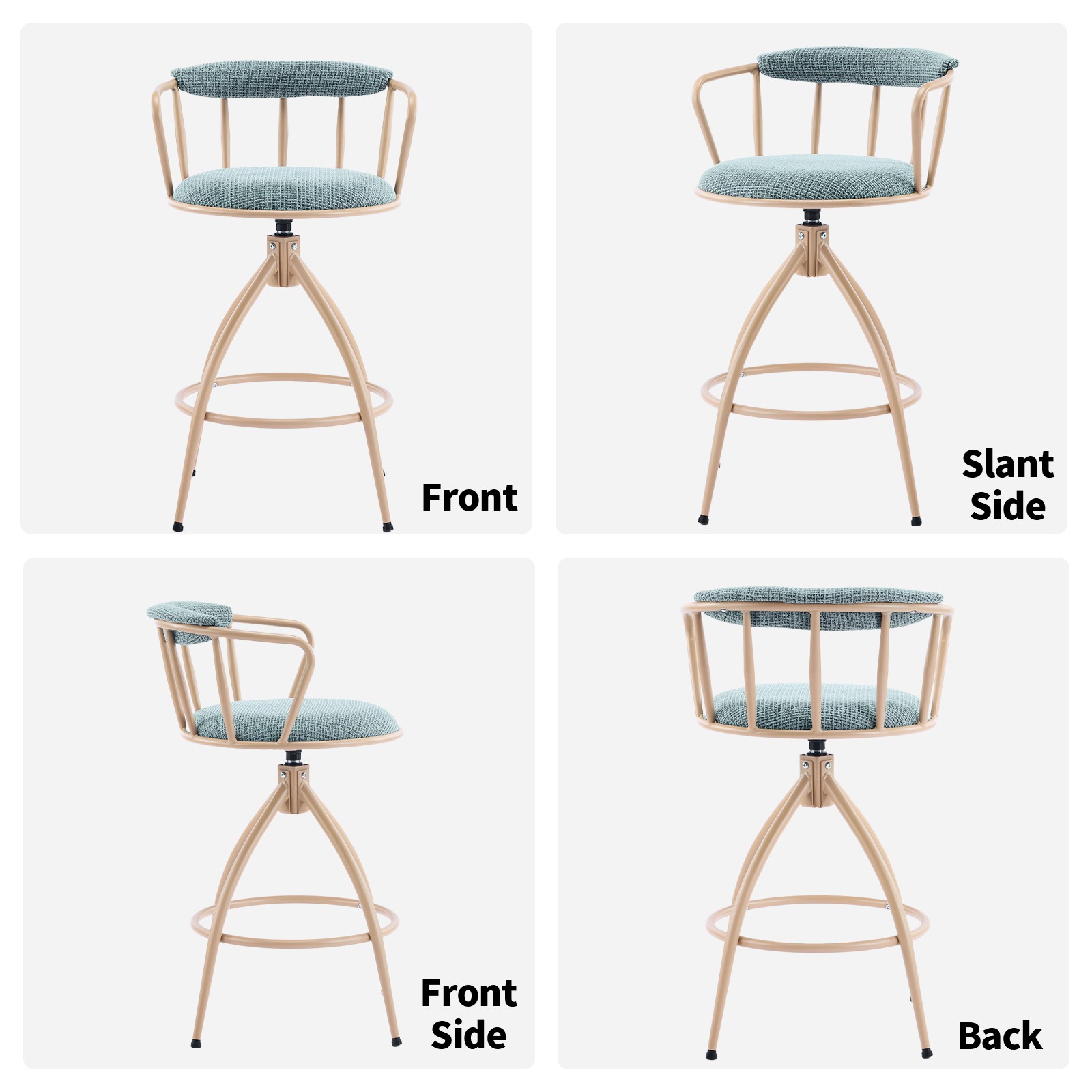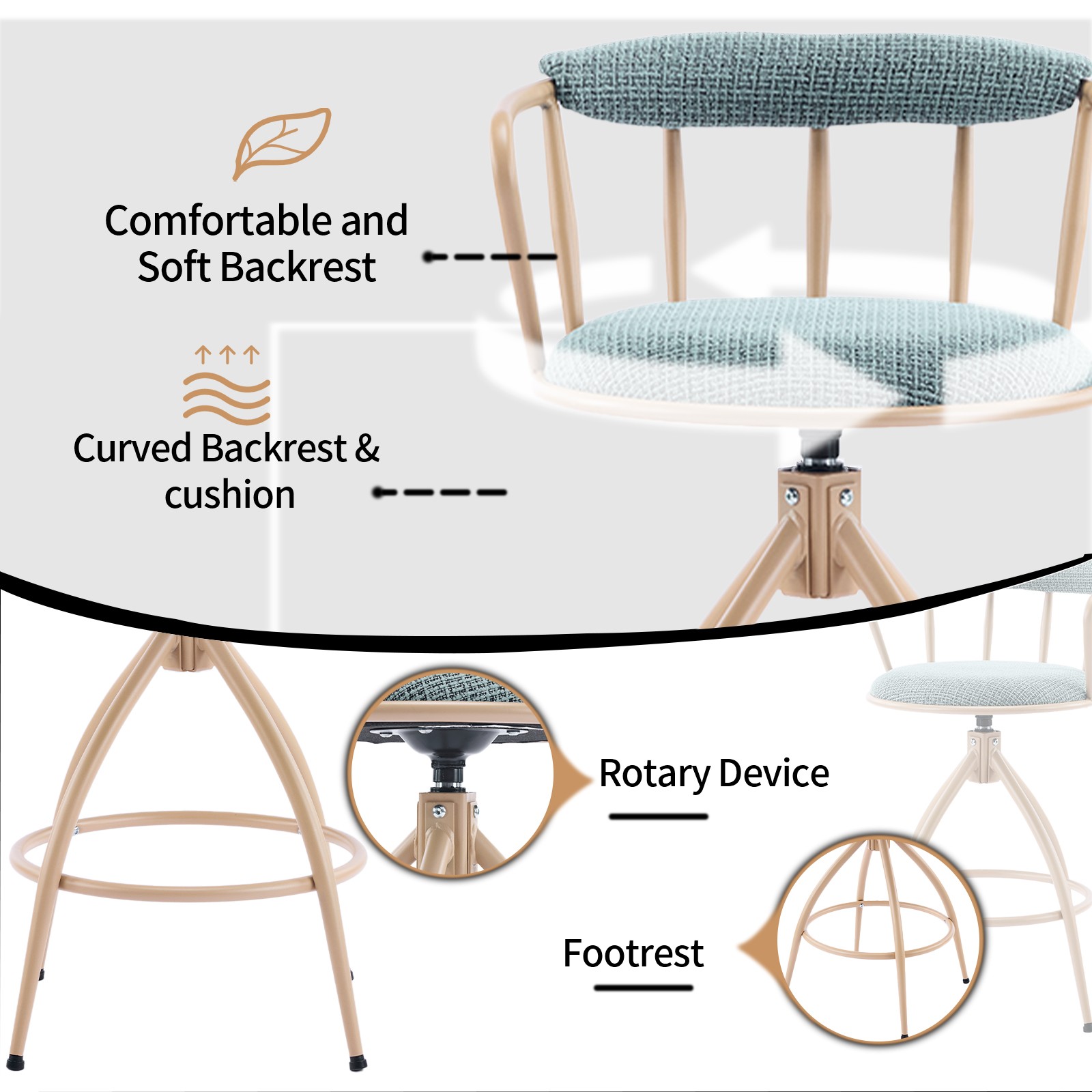 Swivel Counter Height Bar Stools Set of 2 Upholstered Barstools with Back Blue
