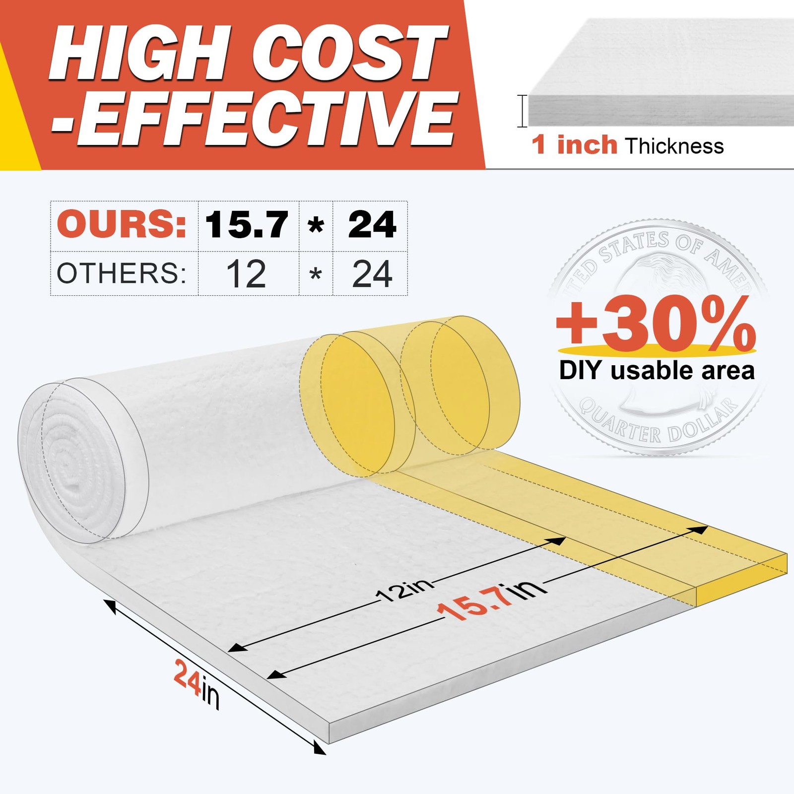 Ceramic Fiber Insulation, 24x15.7x1 Thick, 2600F Fireproof Insulation Blan...