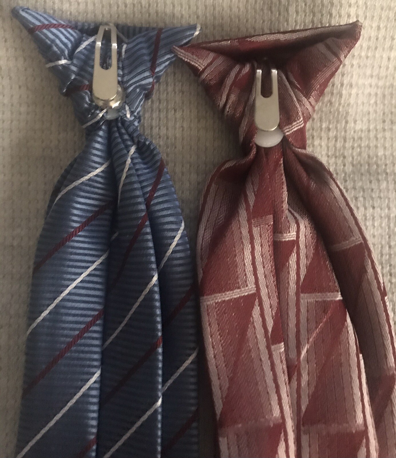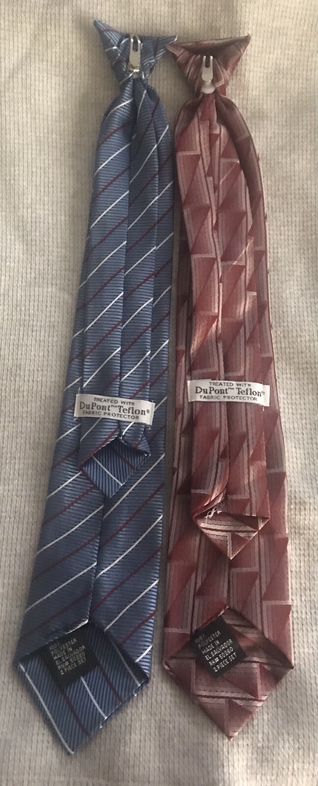 2 Boys Clip on Ties Blue with Stripes Burgundy/gray Dupont Teflon Treated