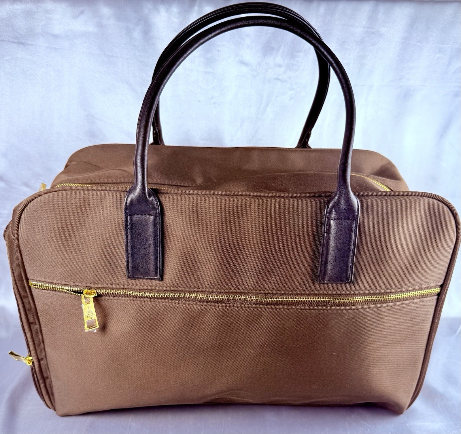 Paco Rabanne Brown Duffel Bag LG Travel Top Zipper Close Handle Gold Hardware