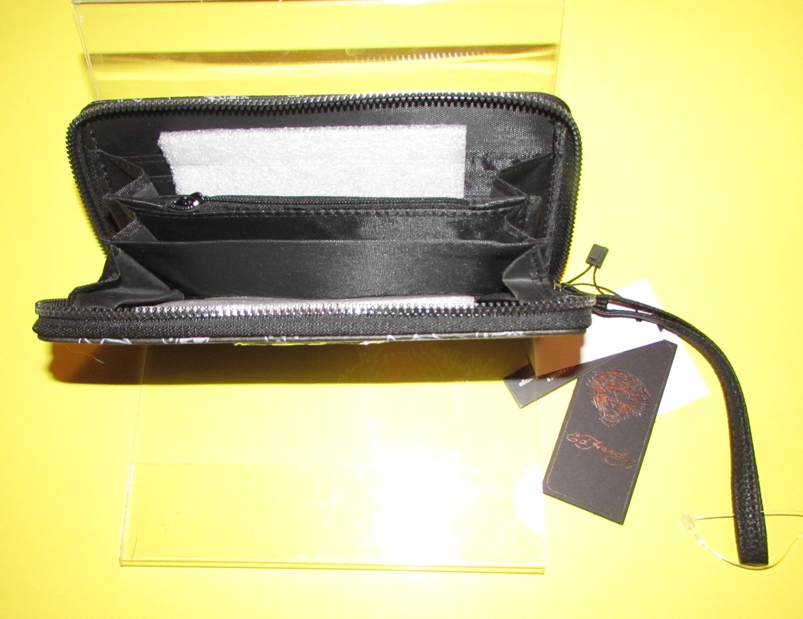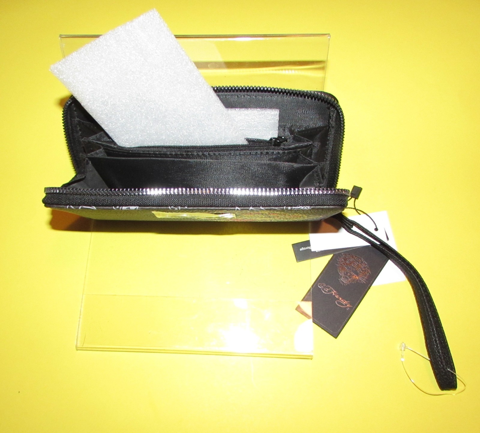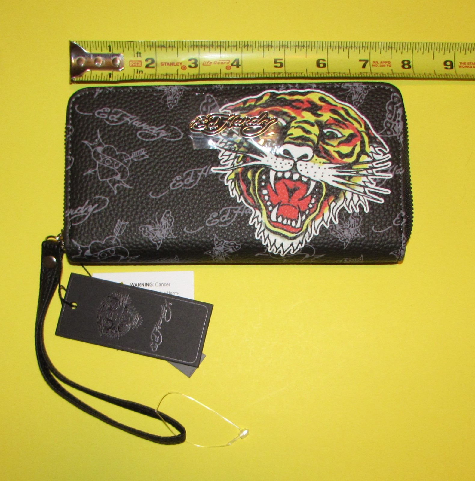 как выглядит Ed Hardy Tiger with Tattoo Skulls Back Round Women s Wallet Wristlet NWT фото