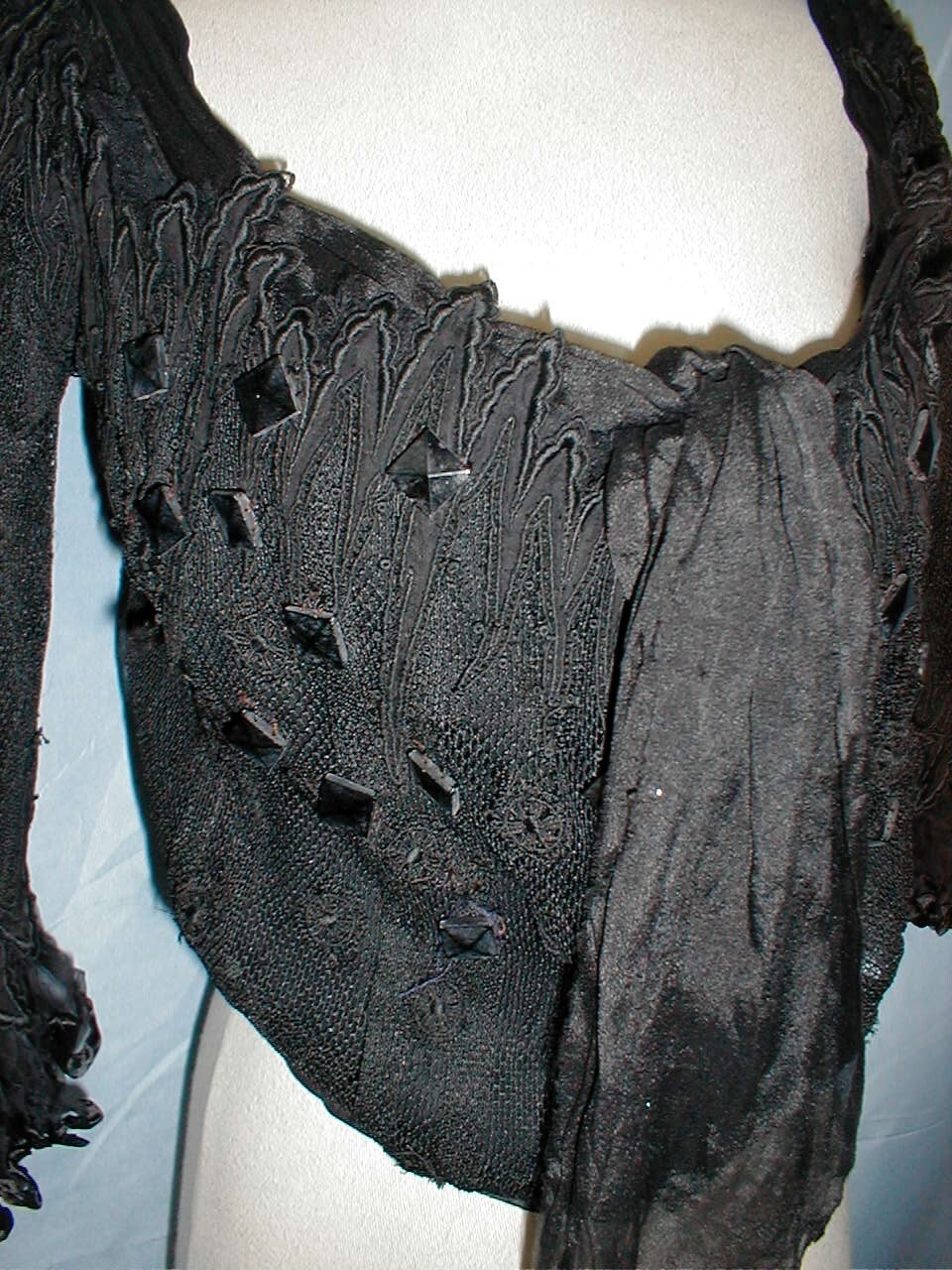 Antique Dress Ballgown Bodice Victorian 1890's Black Lace and Chiffon