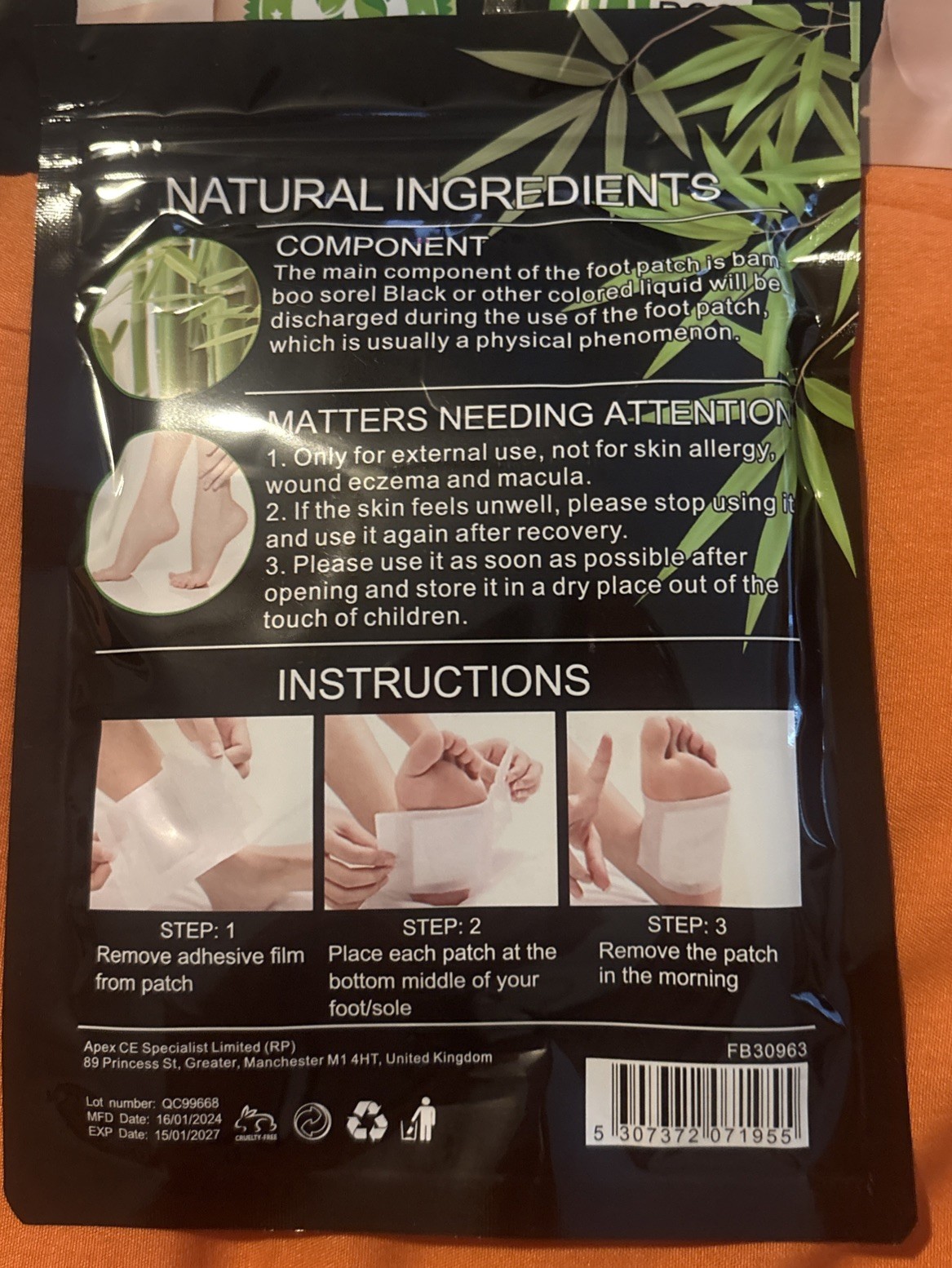 Formulation: detox foot patch