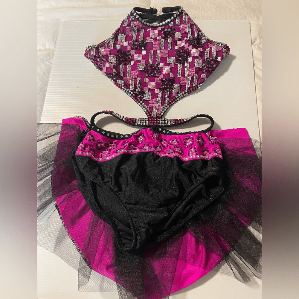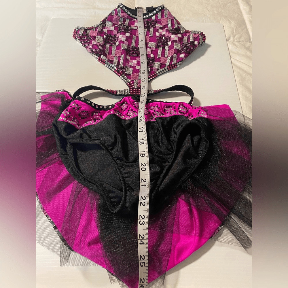 как выглядит Glamour solo dance costume pink black sequin dress XLC-Extra large child NWOT фото