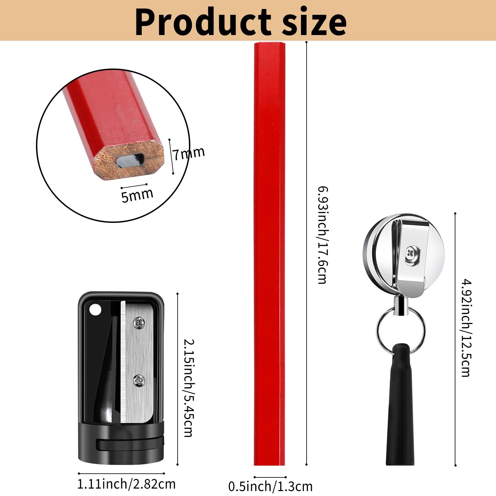 24pcs 7 Inch Flat Black Carpenter Pencils Pencil Sharpener Retractable Holders