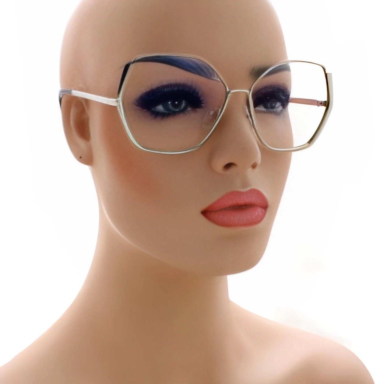 OVERSIZE CLASSIC 70s RETRO Clear Lens EYE GLASSES Large Silver Hexagon Frame