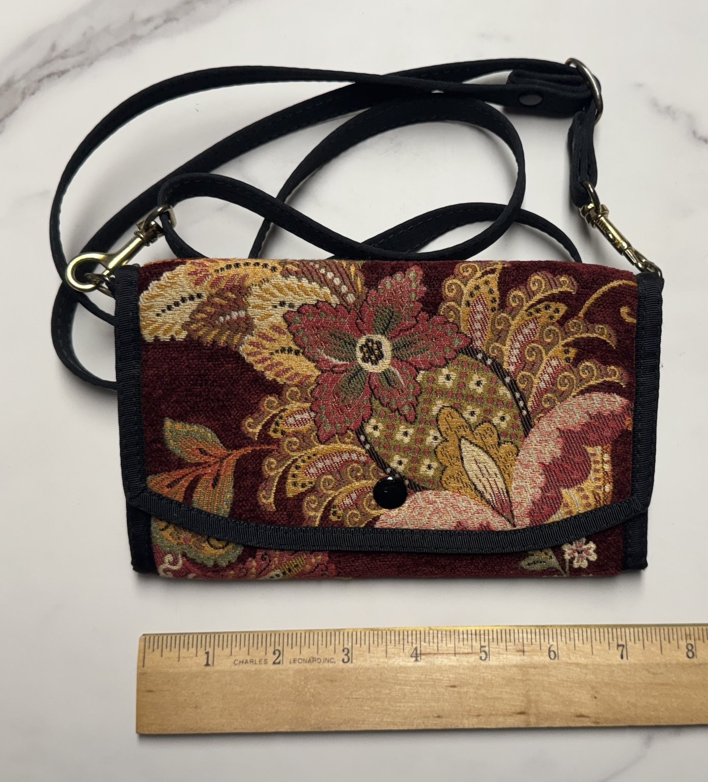 как выглядит Danny K Floral Tapestry Crossbody Bag Vintage Made in USA Burgundy фото