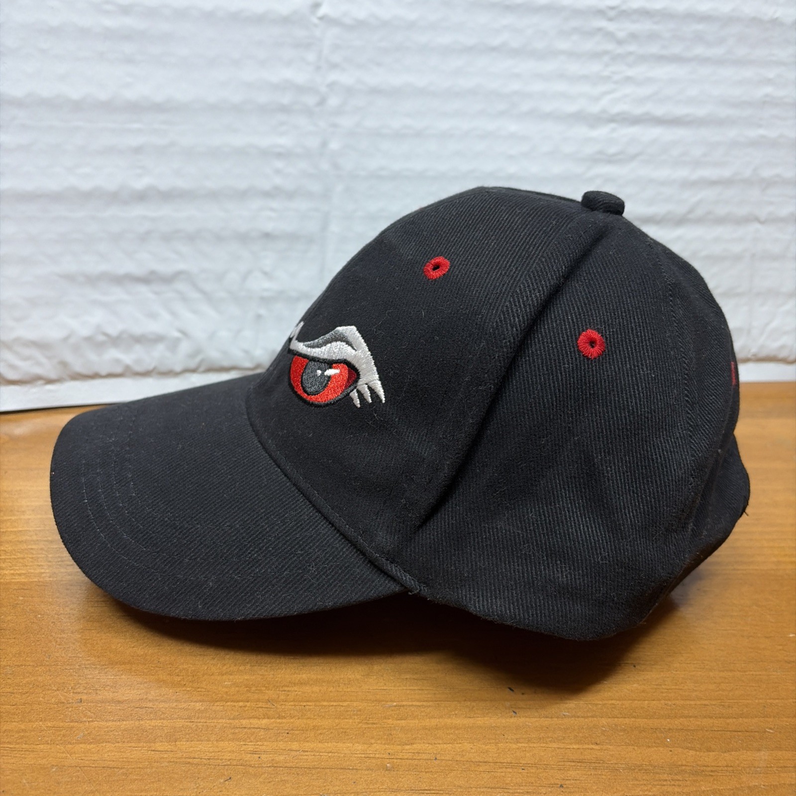 как выглядит Portland Winterhawks Hat Promo Black Strapback Red Scary Eyes Hockey фото