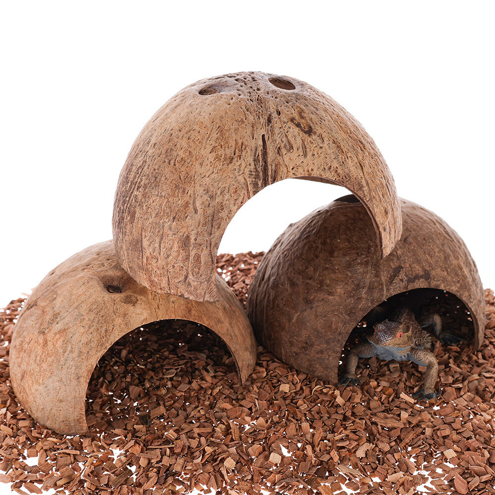 Hiding Cave Shelter Reptile Natural Coconut Shell Small Animal House Snake Pet