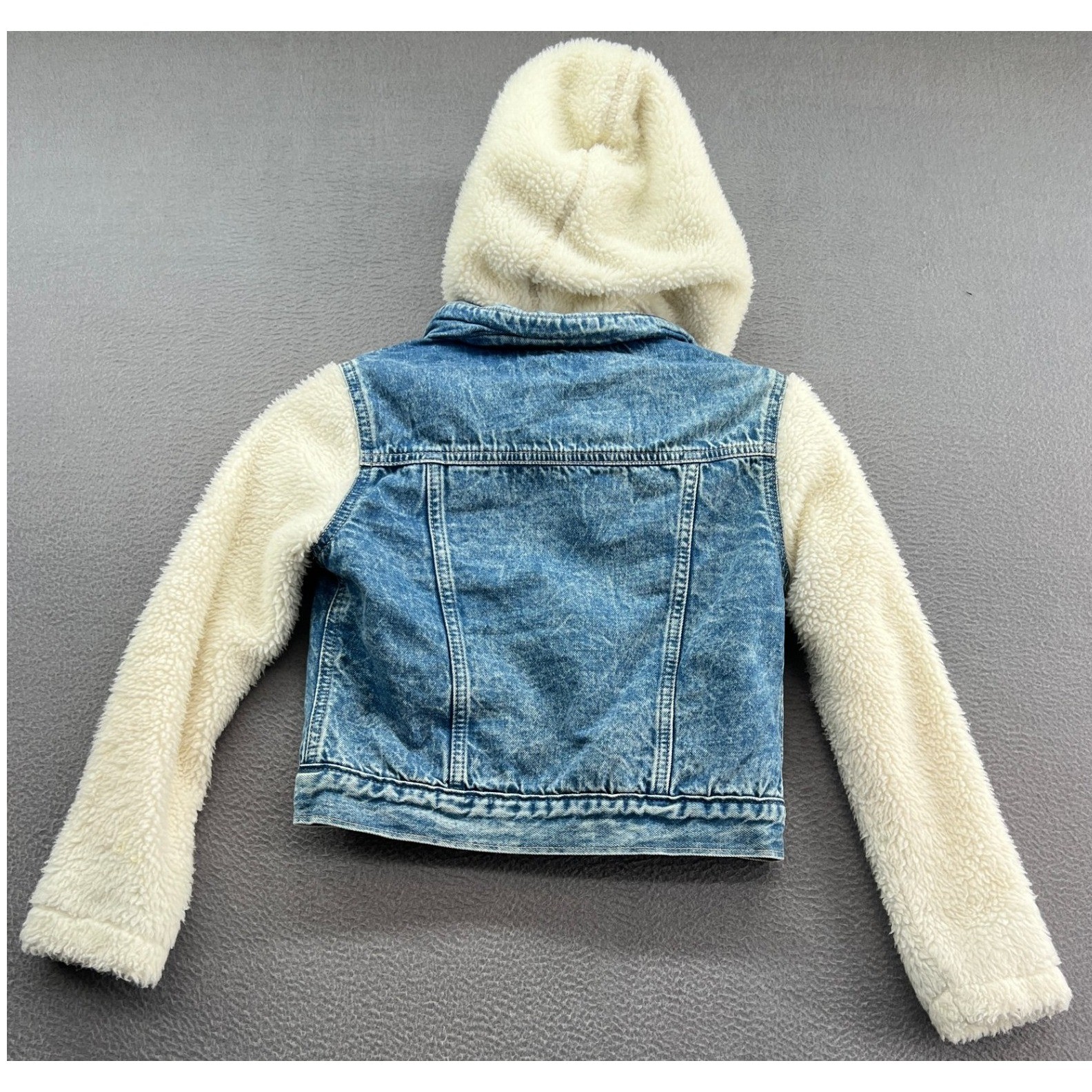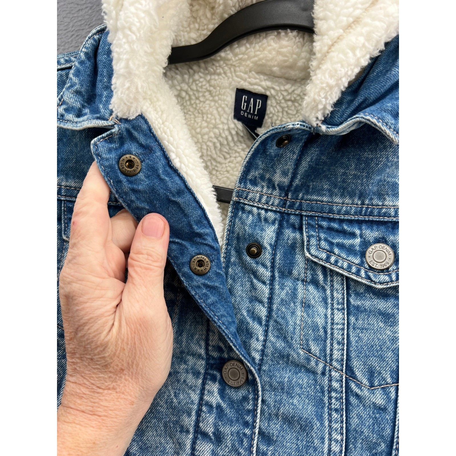 GAP Kids Jacket Sz M Denim Sherpa Lined Hooded Jacket Blue