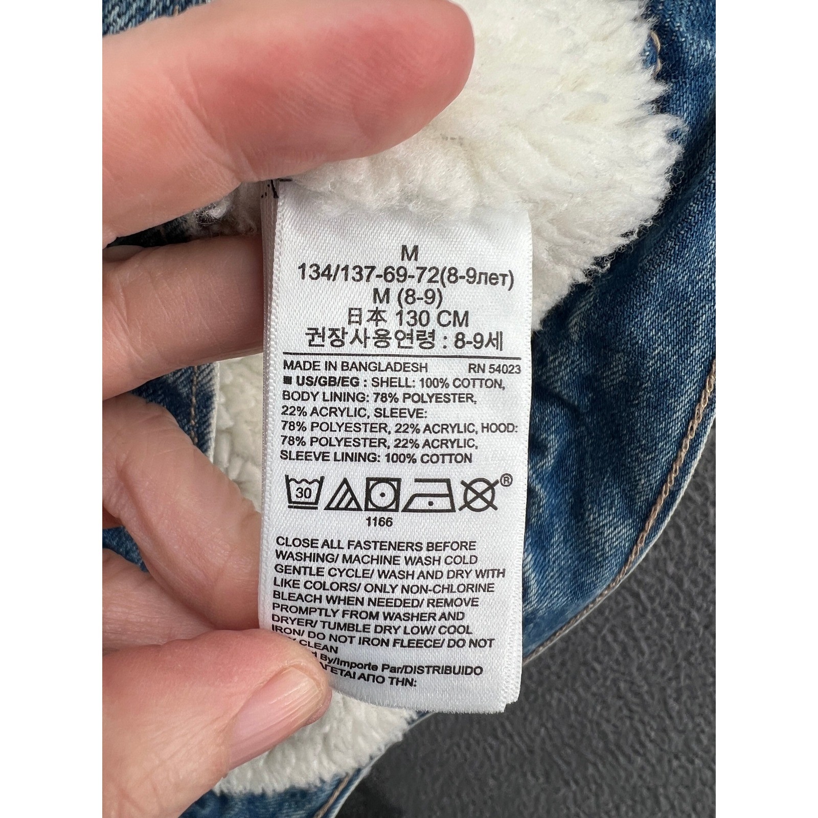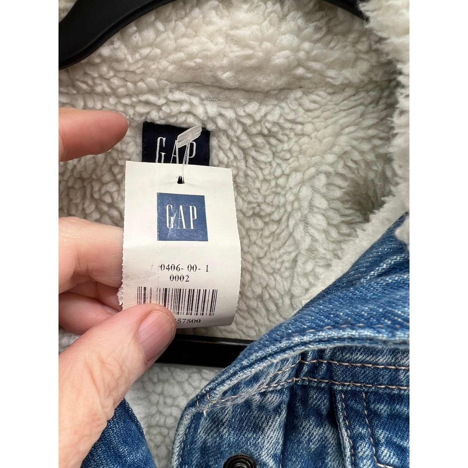 как выглядит GAP Kids Jacket Sz M Denim Sherpa Lined Hooded Jacket Blue фото