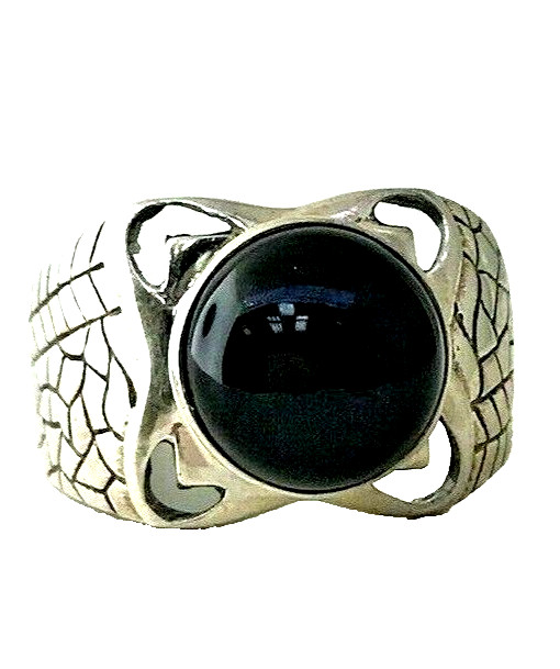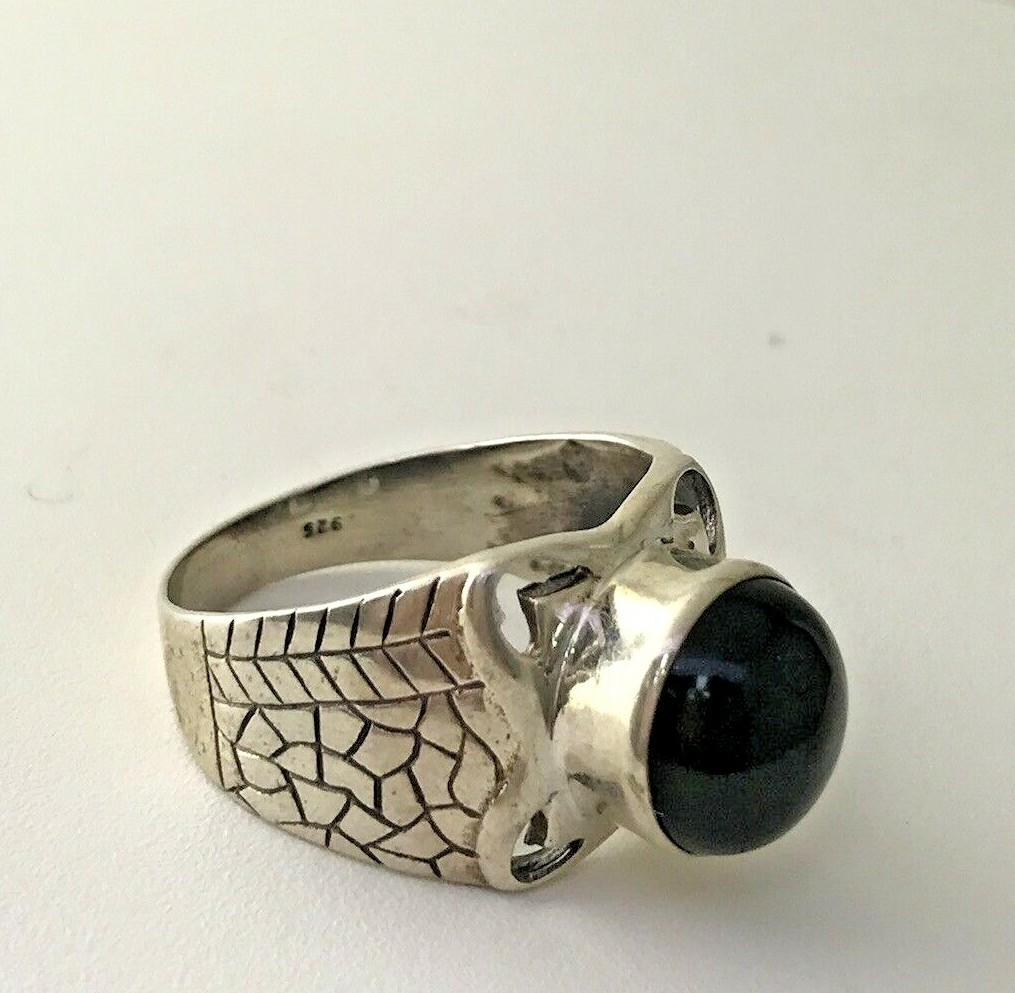 как выглядит Cabochon Black Onyx Statement Ring in Sterling Silver Round Energy Stone Sz 9 фото